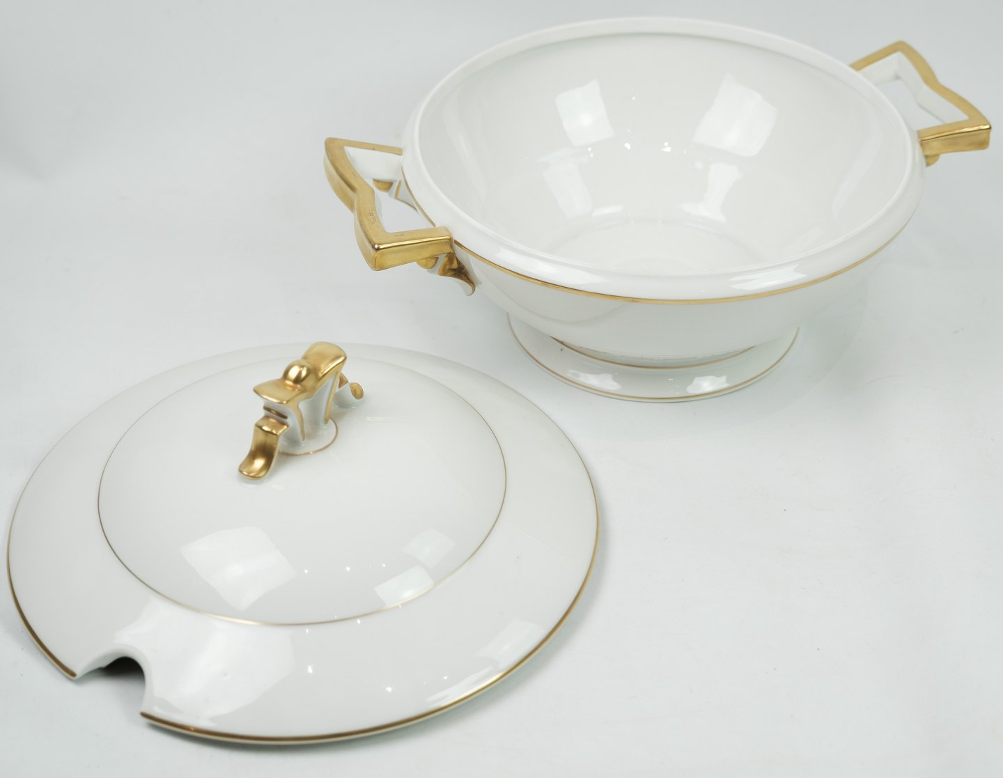 Stor suppe terrin af porcelænsfabrik Hautheim, model 7800. Står super flot i guldet i fin brugt stand.