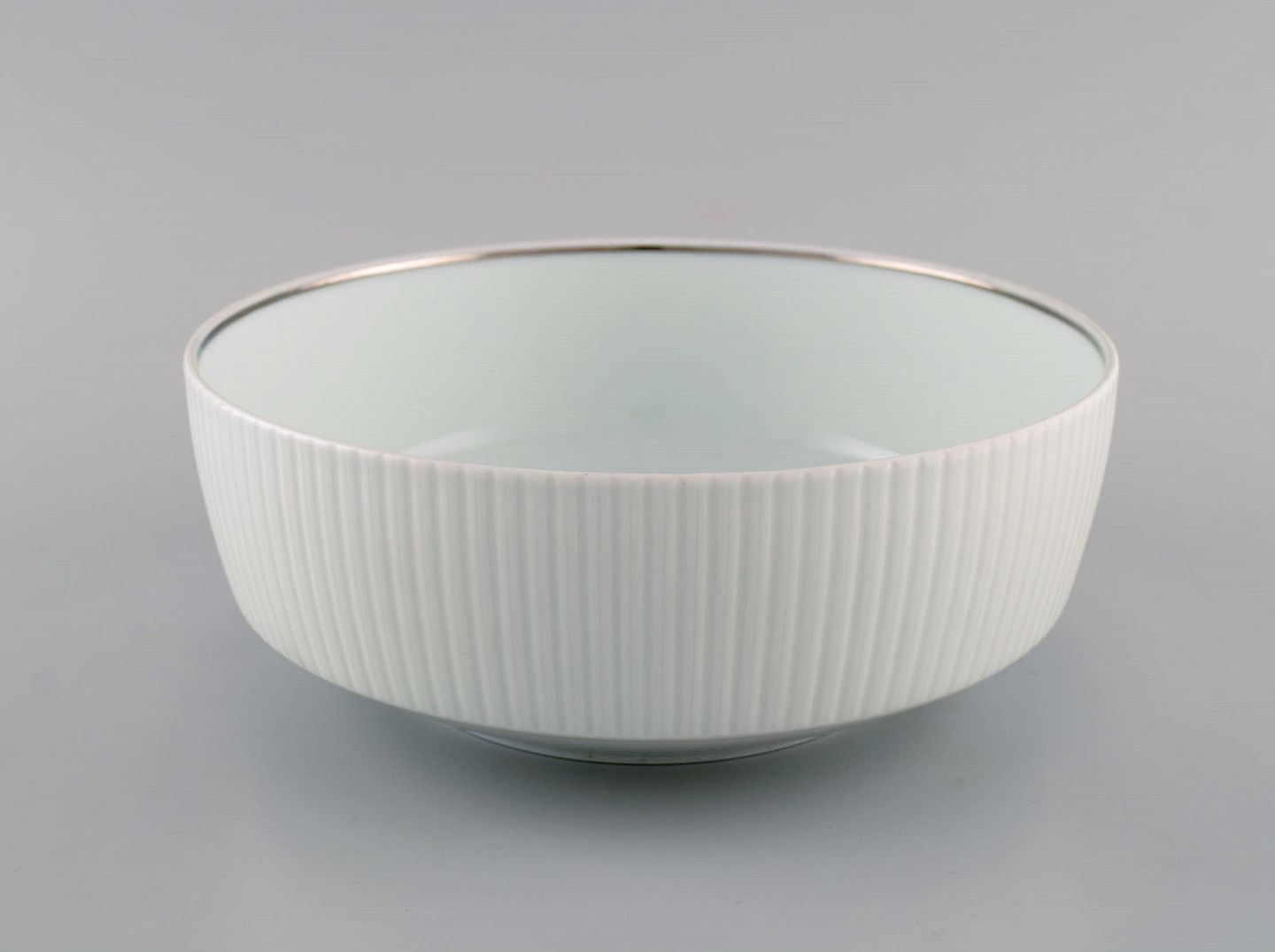 Tapio Wirkkala for Rosenthal. Sjælden Modulation skål i riflet porcelæn. Platinum Detail. Klassisk og tidsløst design. 1960'erne.