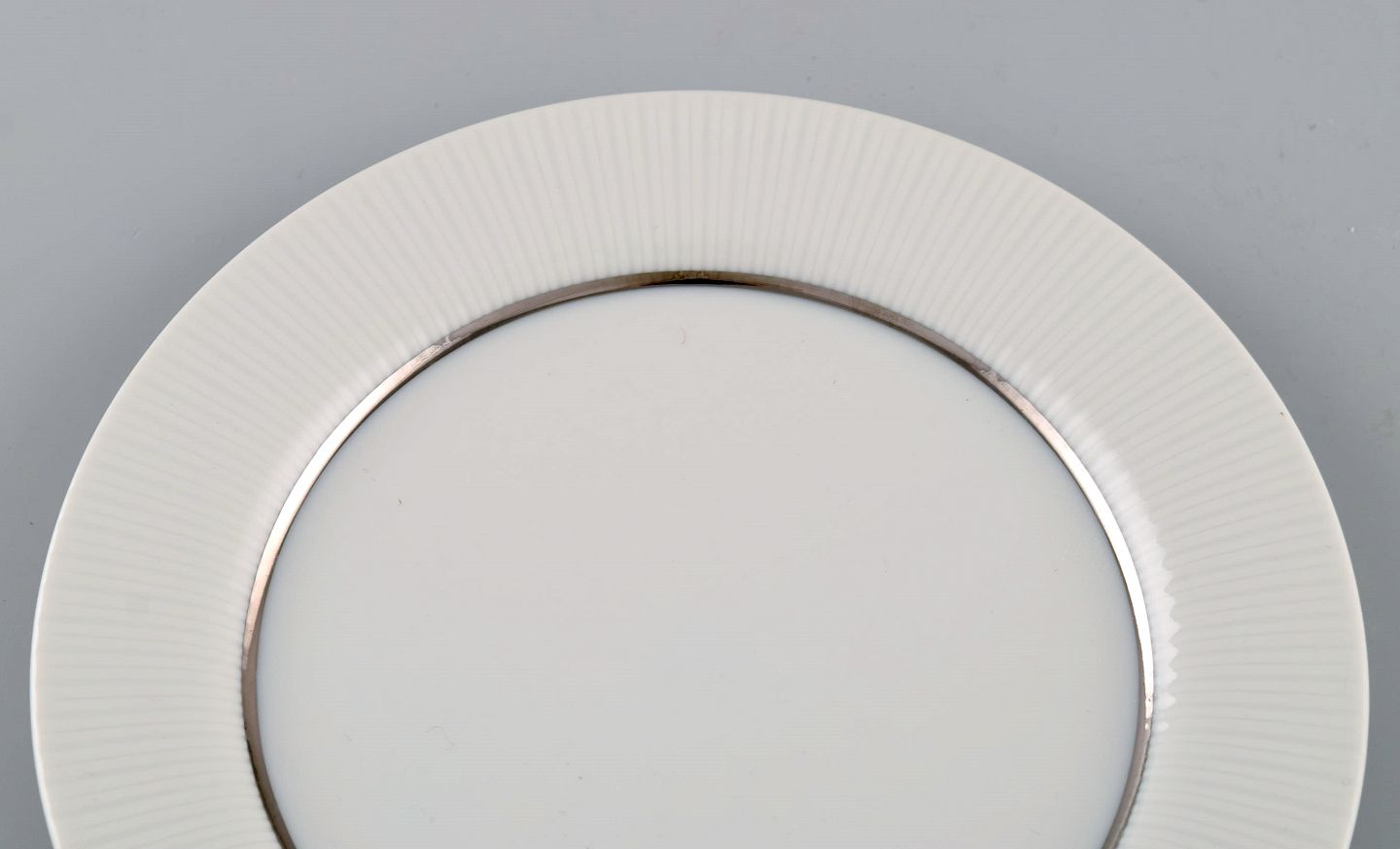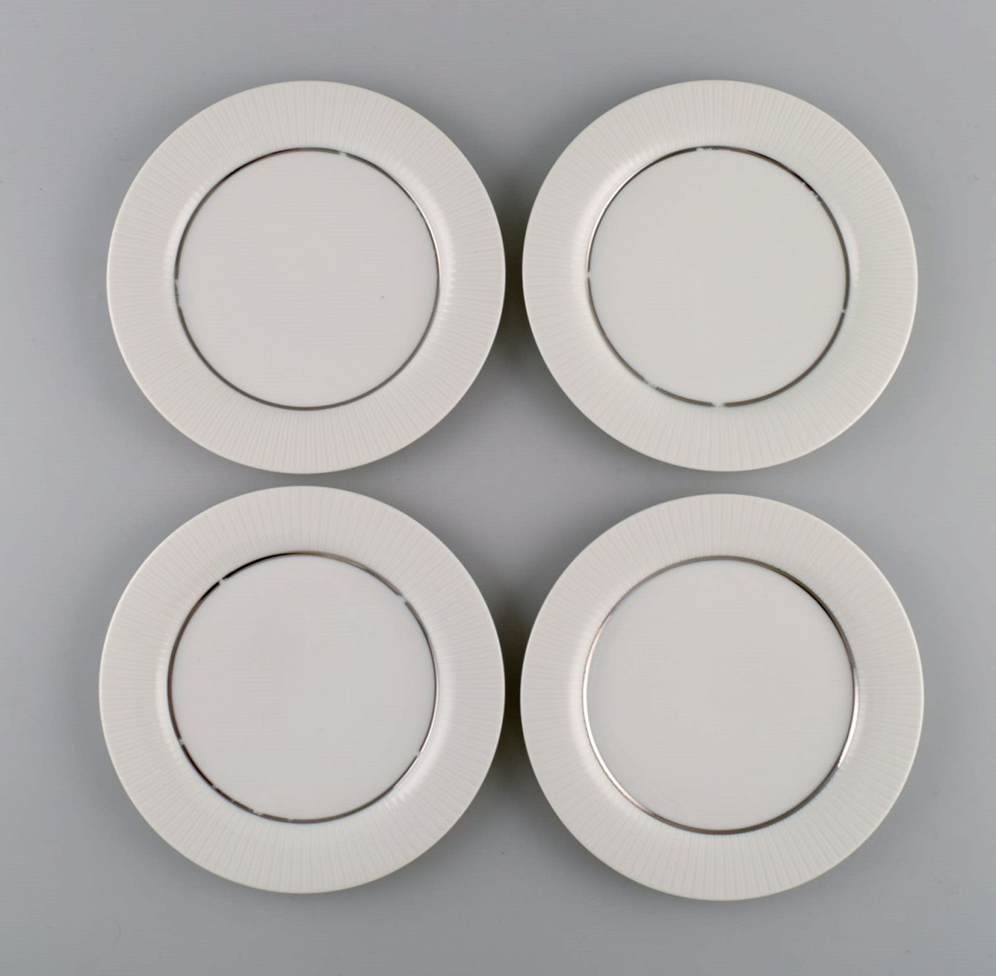 Tapio Wirkkala for Rosenthal. Otte sjældne Modulation tallerkener i porcelæn med riflet kant. Platinum Detail. Klassisk og tidsløst design. 1960'erne.
