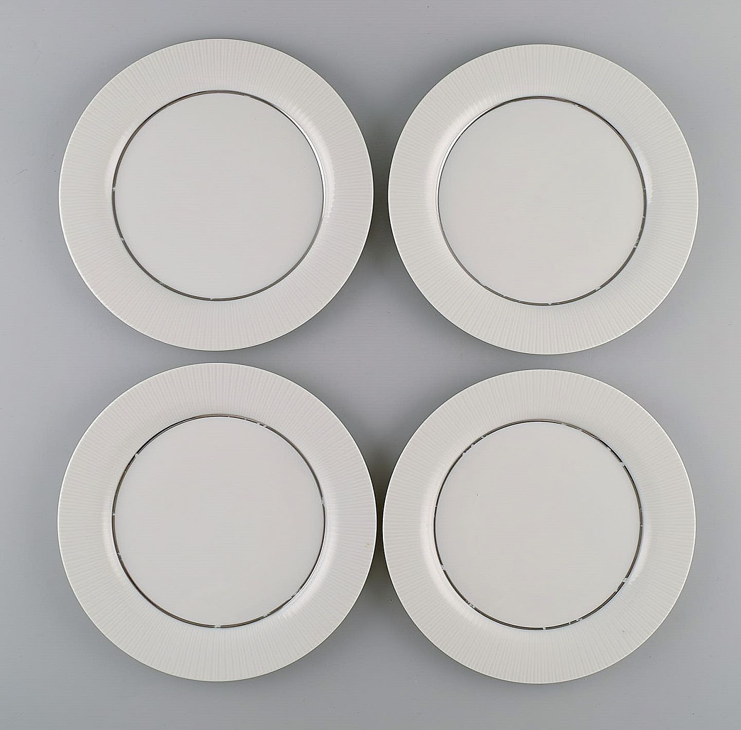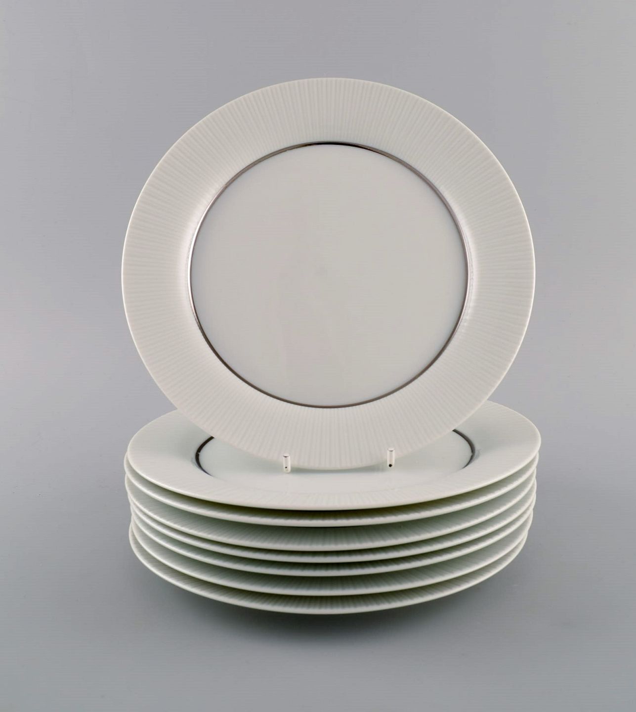 Tapio Wirkkala for Rosenthal. Otte sjældne Modulation frokosttallerkener i porcelæn med riflet kant. Platinum Detail. Klassisk og tidsløst design. 1960'erne.