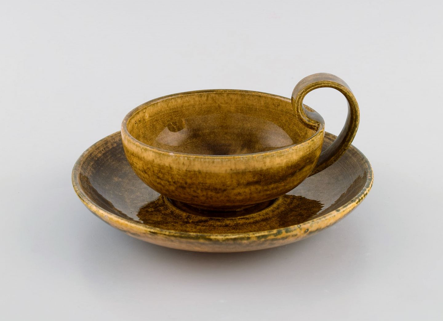 Kähler, HAK. Egoist tesæt i glaseret stentøj. Smuk gul uranglasur. Midt 1900-tallet.