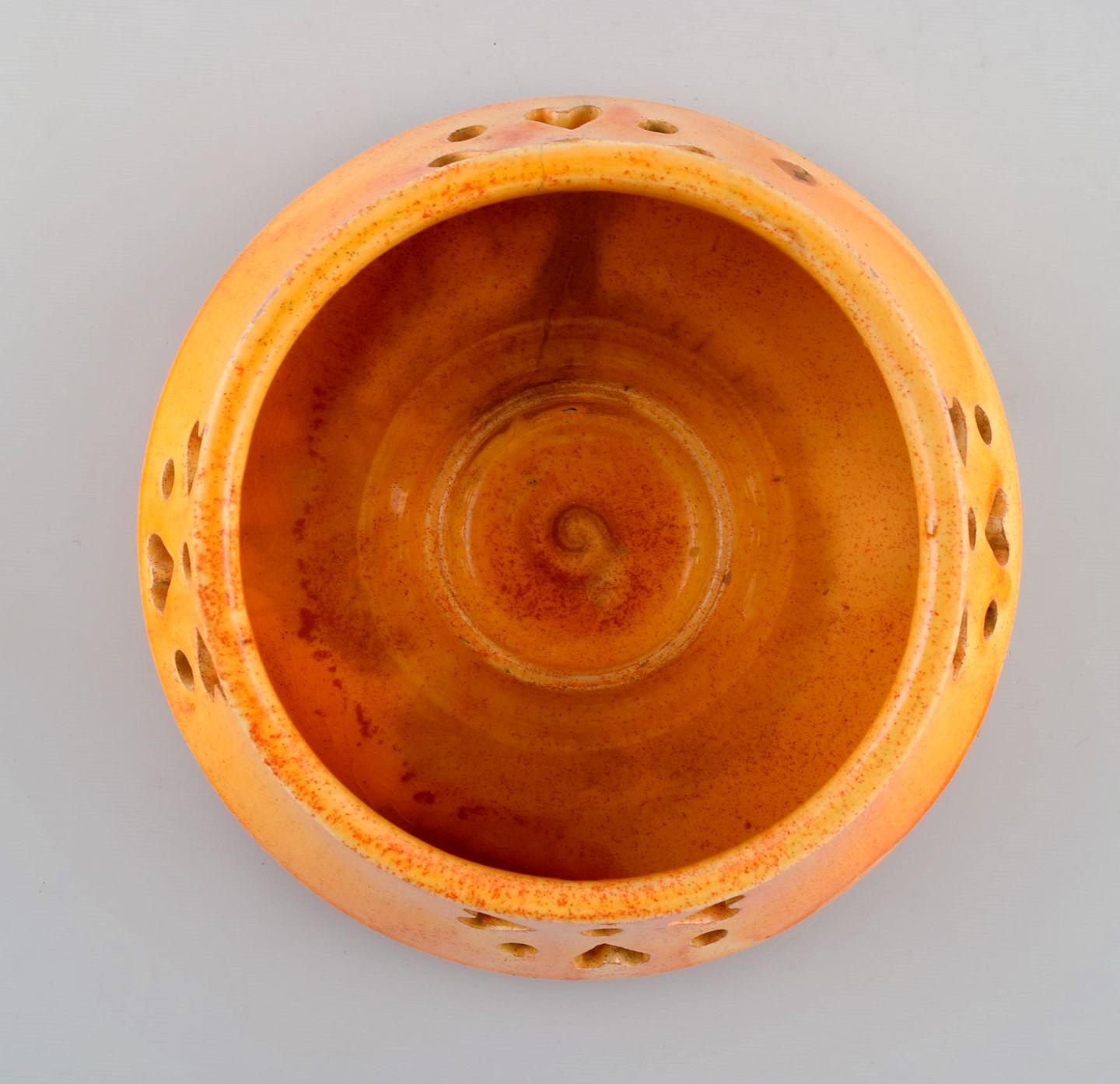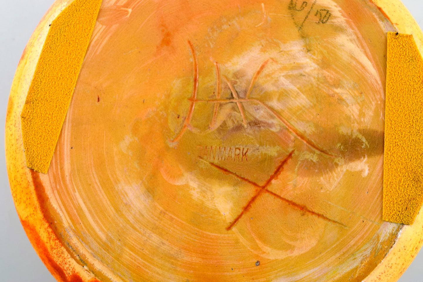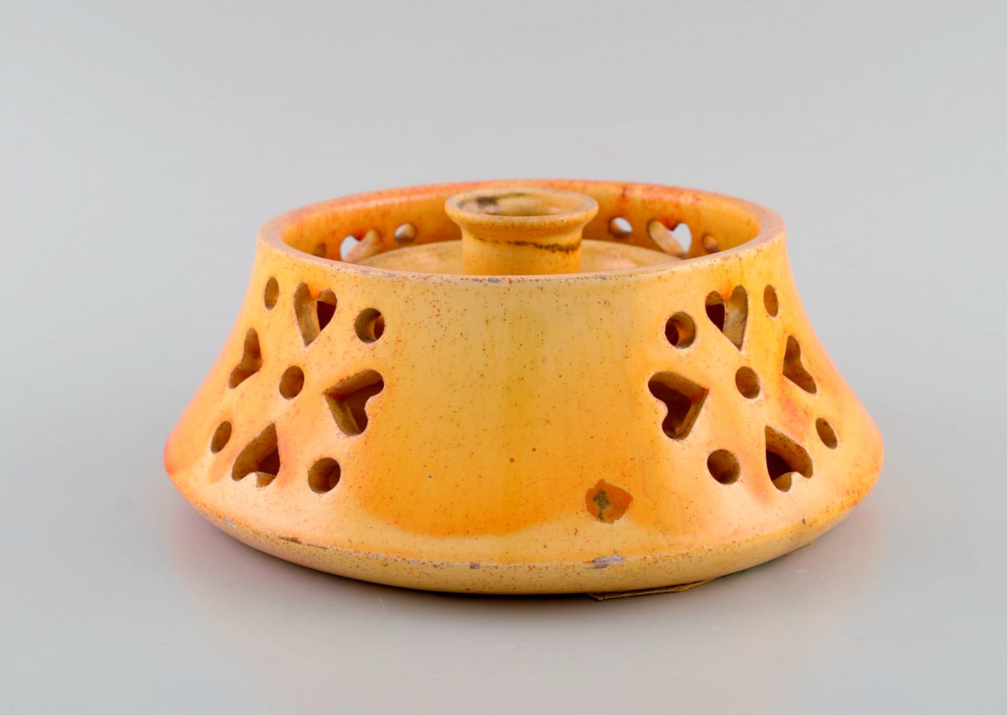 Kähler, HAK. Lysestage med varmer i glaseret stentøj. Smuk orange uranglasur. Midt 1900-tallet.