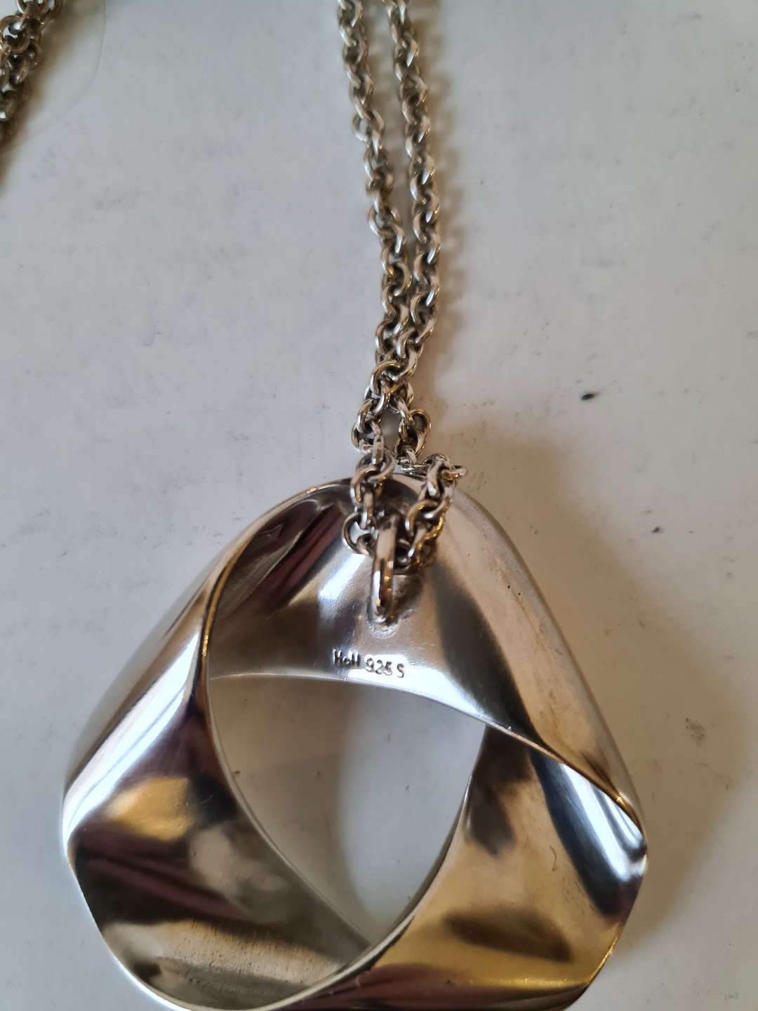 Hans Hansen lang sølv halskæde med stort vedhæng i moderne design