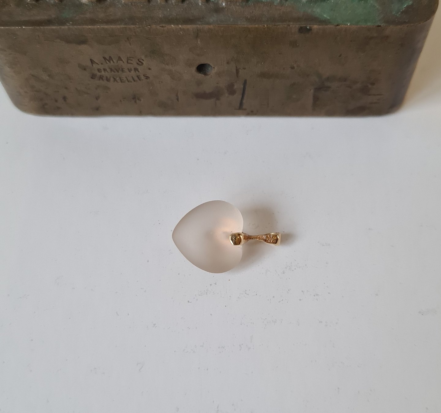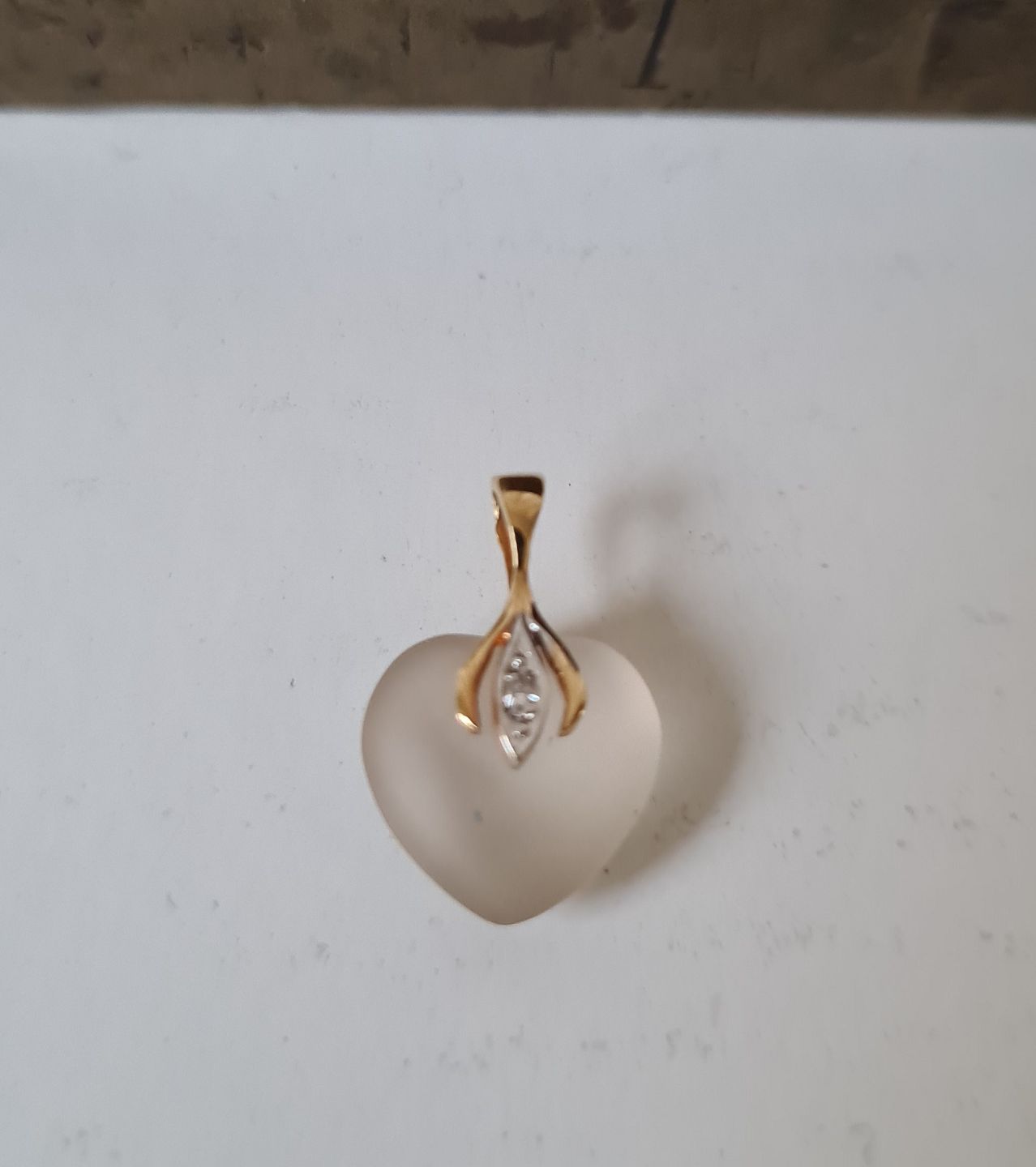 Smukt hjerte vedhæng i slebet bjergkrystal, rød & hvid guld samt en brillant