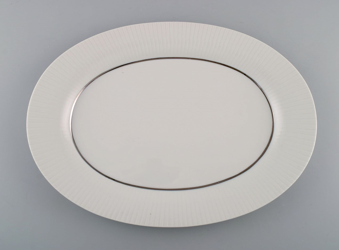 Tapio Wirkkala for Rosenthal. Sjældent Modulation serveringsfad i riflet porcelæn. Platinum Detail. Klassisk og tidsløst design. 1960'erne.