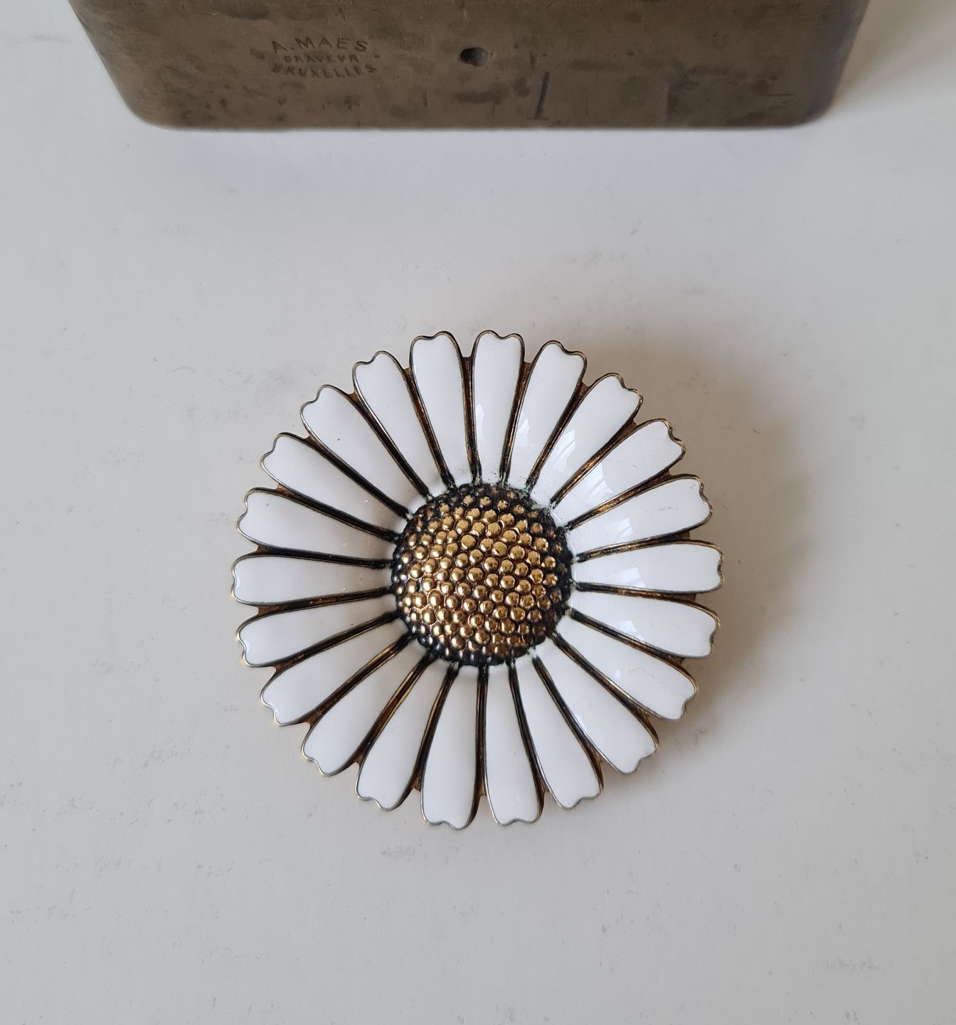 Marguerit broche i emalje og forgyldt sølv af Volmer Bahner