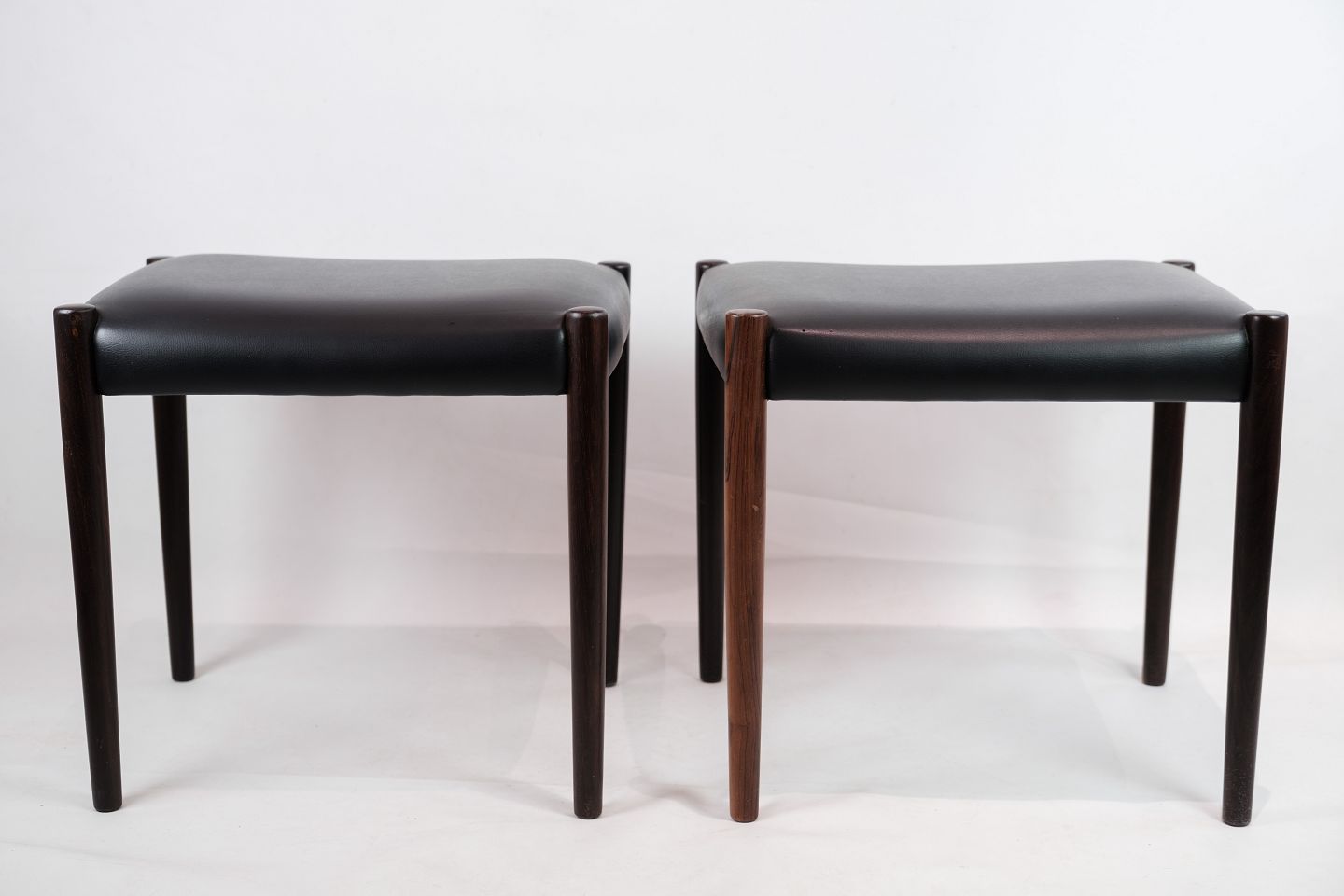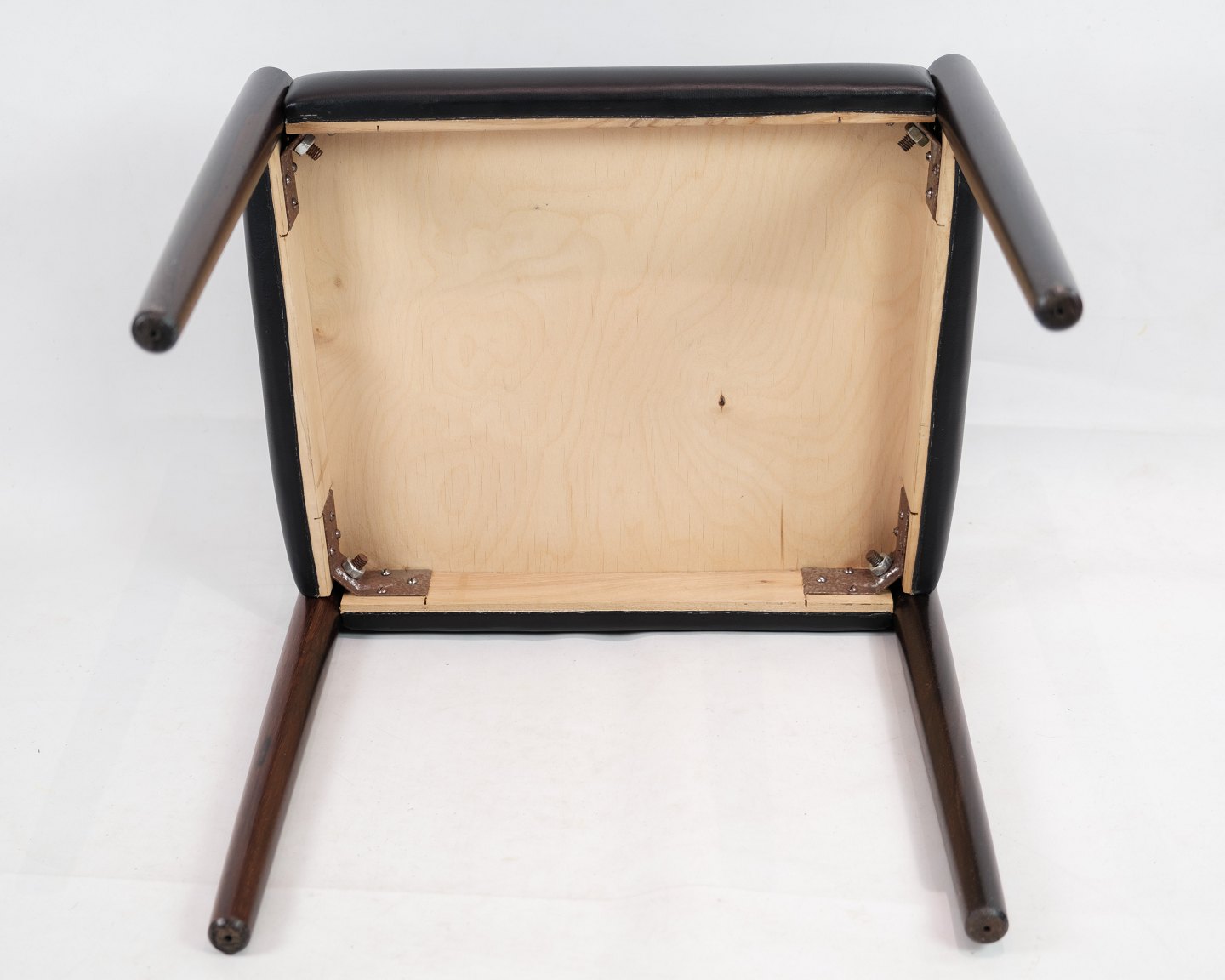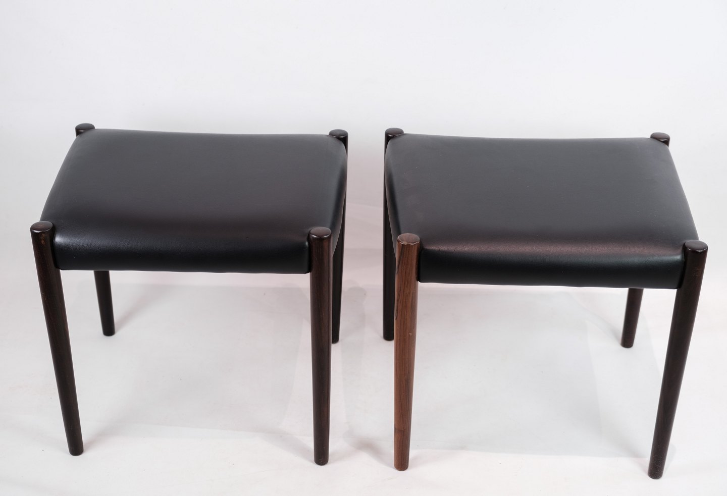 Et Sæt Af To Skamler - Palisander - Sort Læder - Dansk Design - 1960