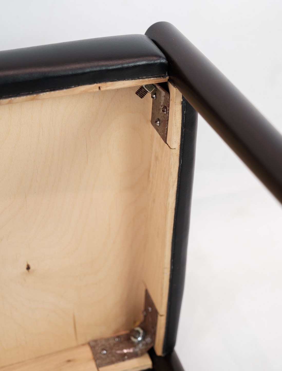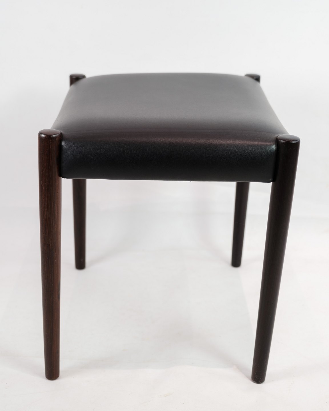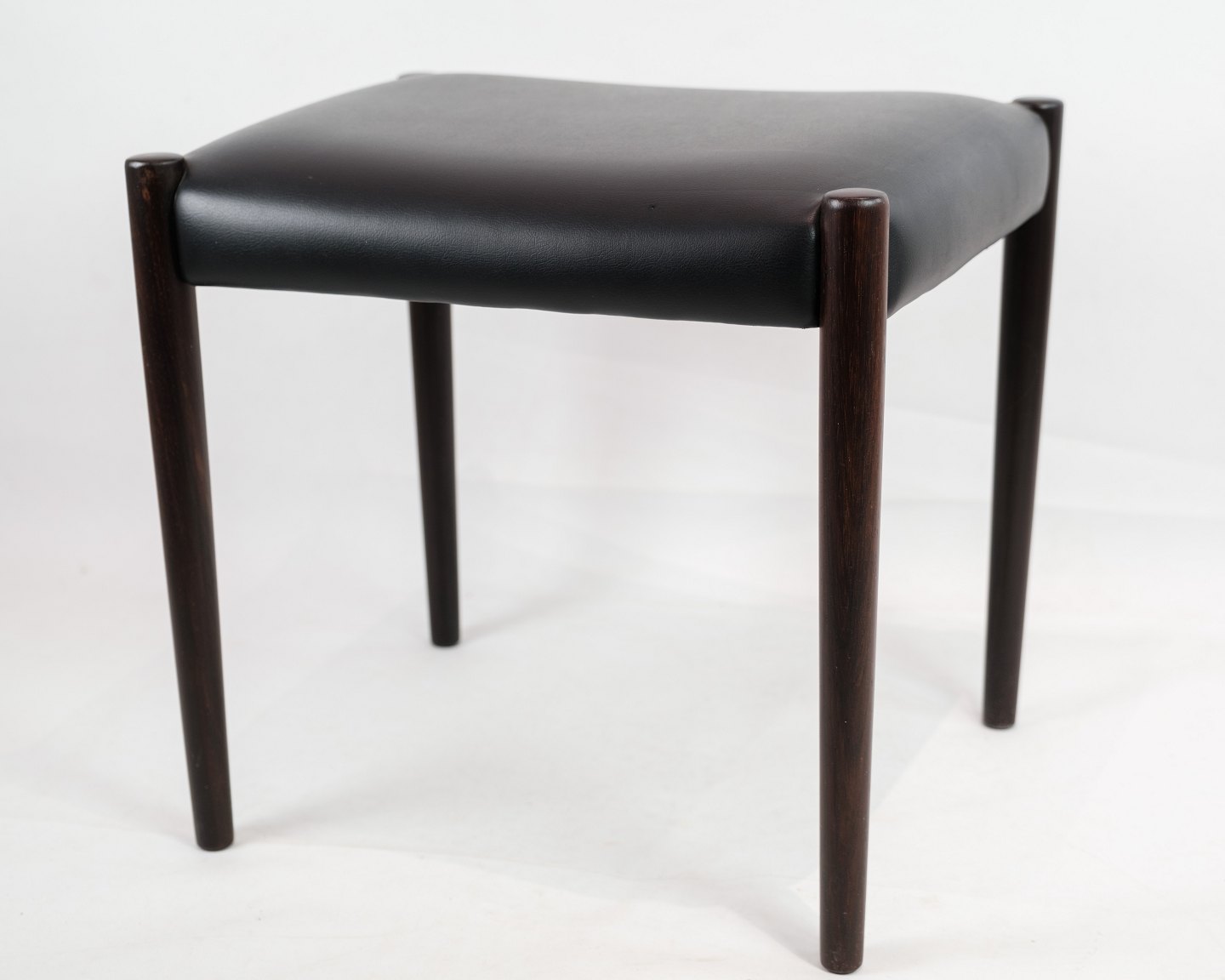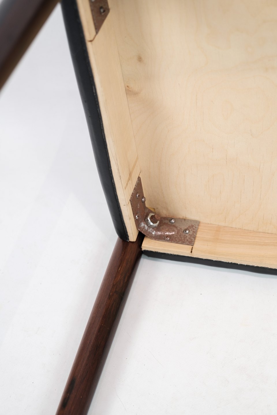 Et Sæt Af To Skamler - Palisander - Sort Læder - Dansk Design - 1960