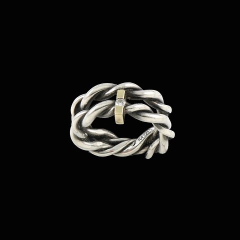 Richard Aaboe. Ring i sterling sølv med 14k guld og brillant 0.03ct.