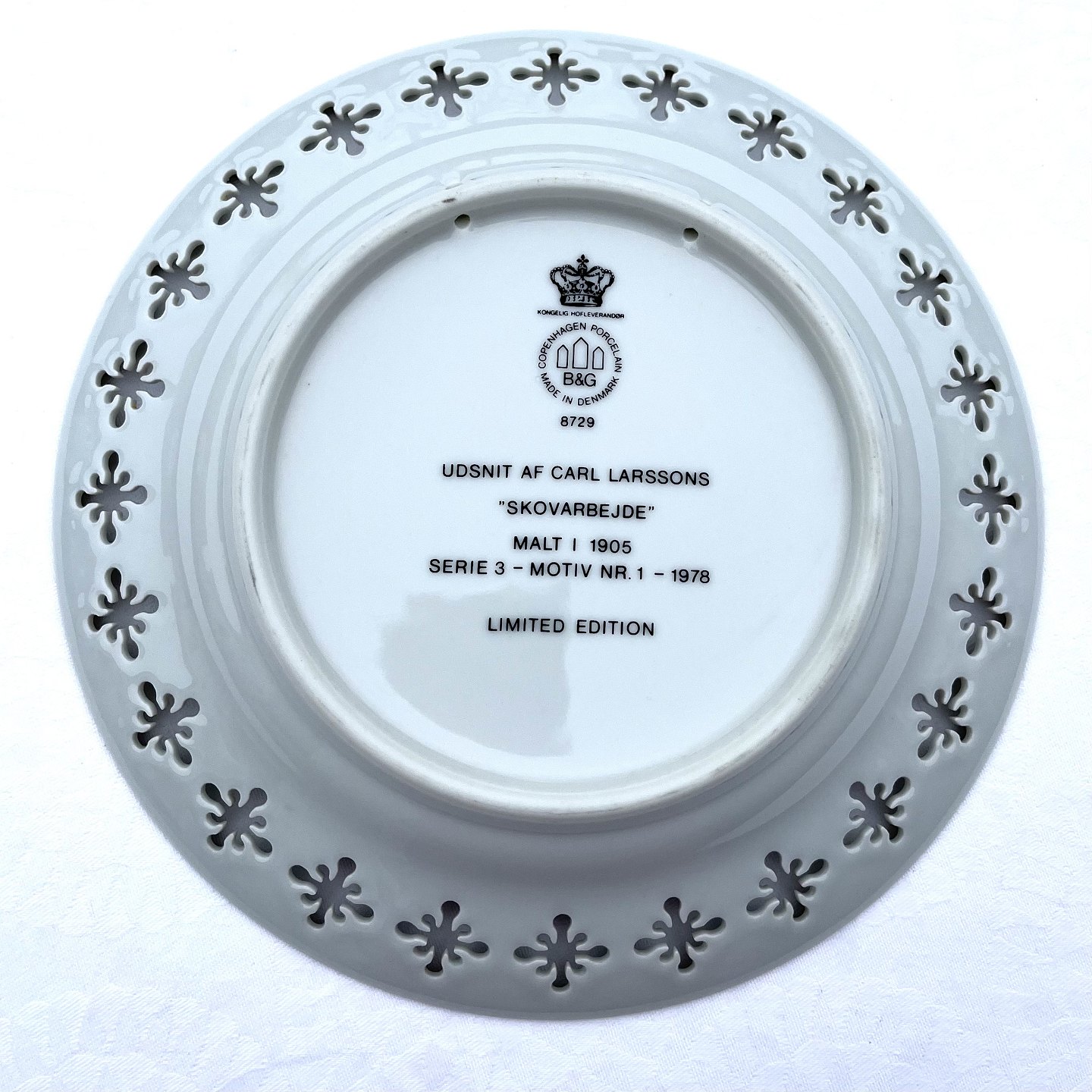 Bing & Grøndahl, Carl Larsson, Platte, “Skovarbejde” Serie 3, Motiv nr.1, 21,5cm i diameter *Perfekt stand*