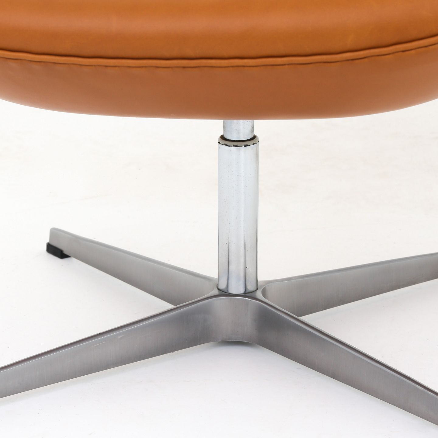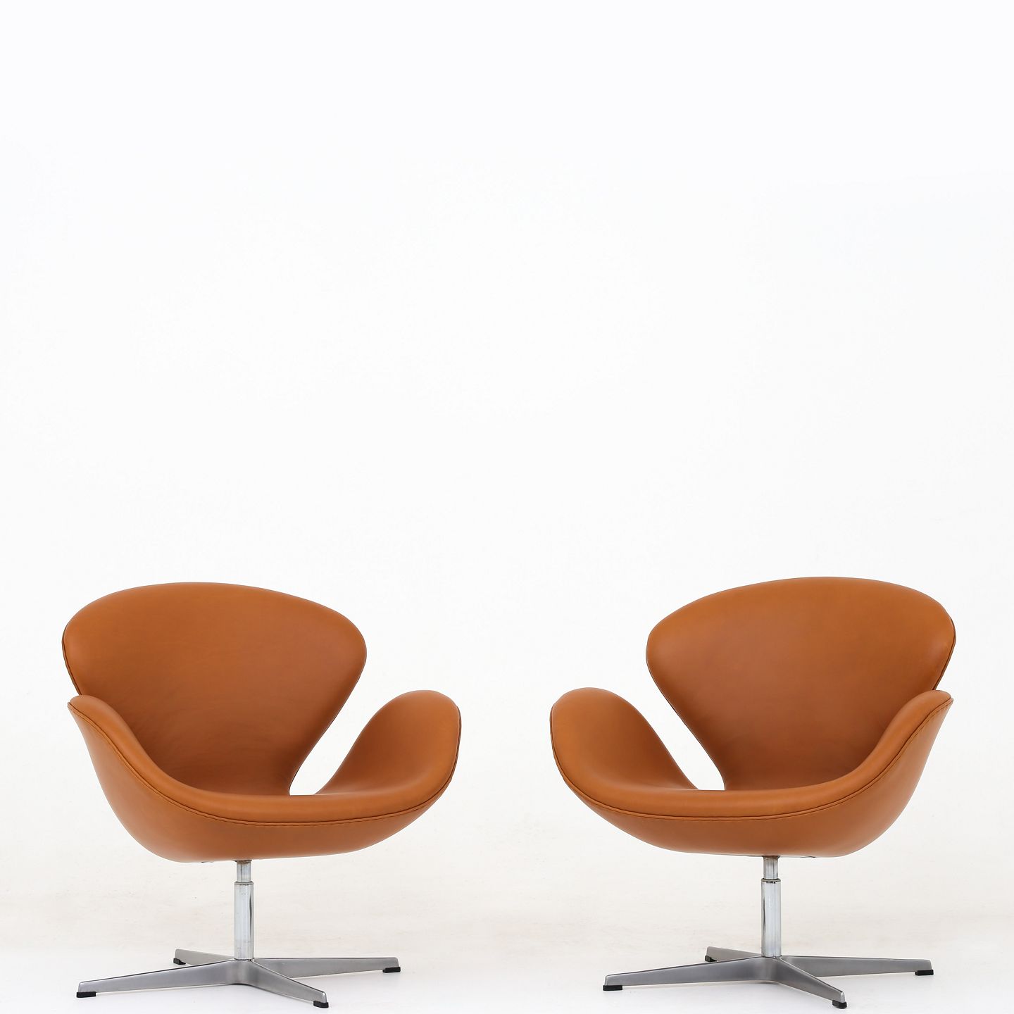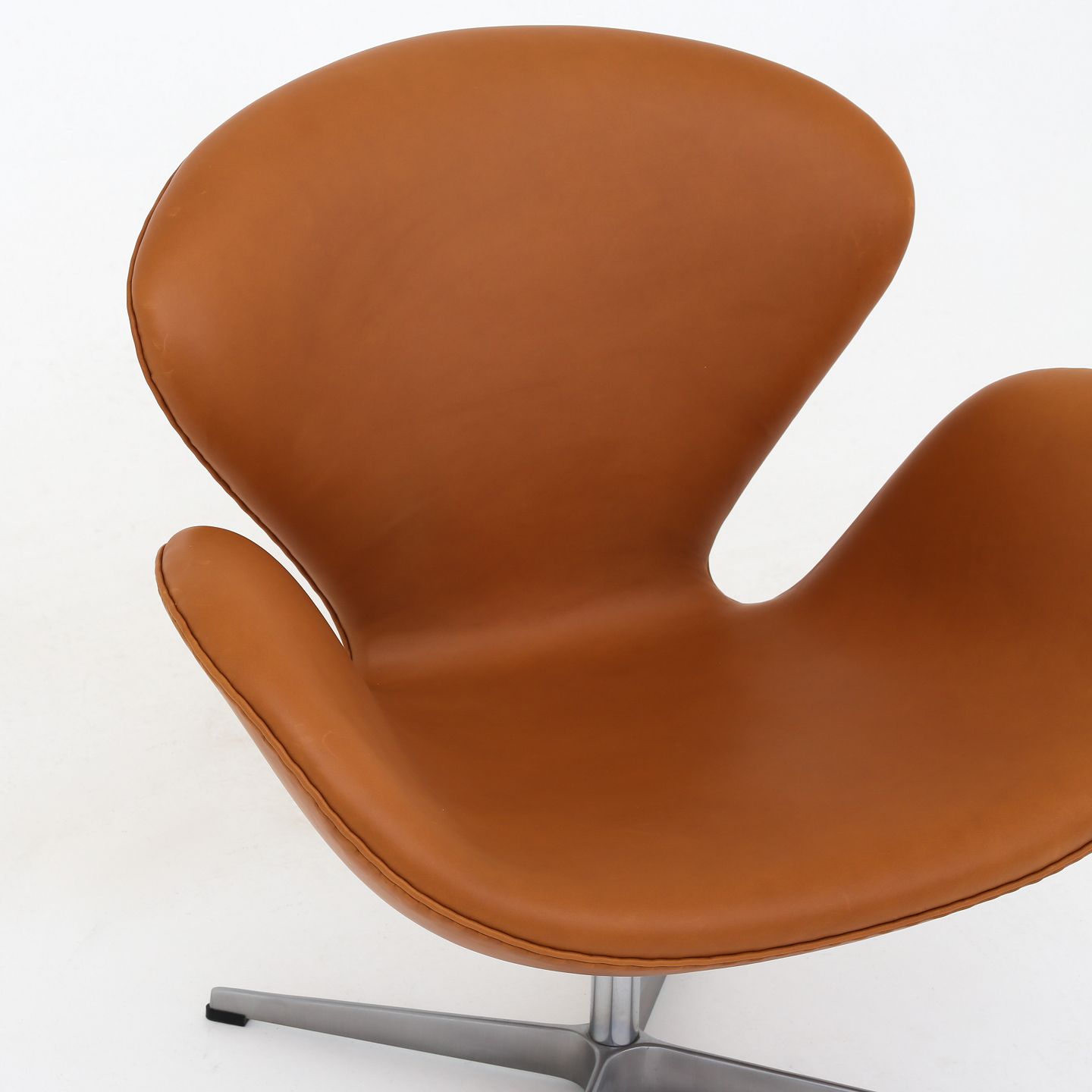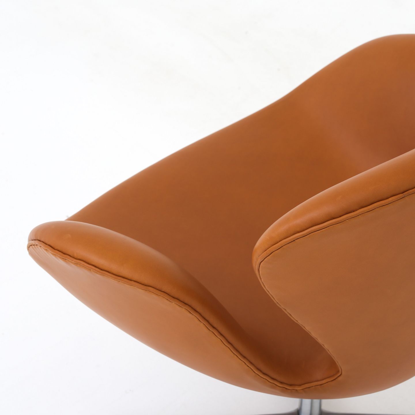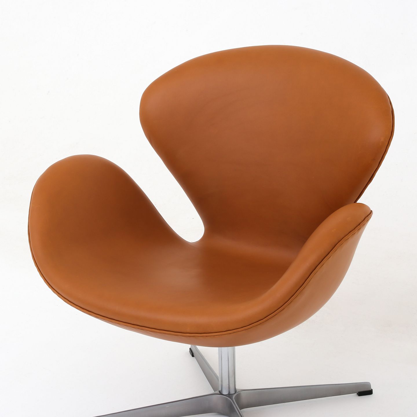 AJ 3220 - Nybetrukket 'Svanen' i Klassik Cognac anilin-læder på gl. fod af aluminium med returdrej.