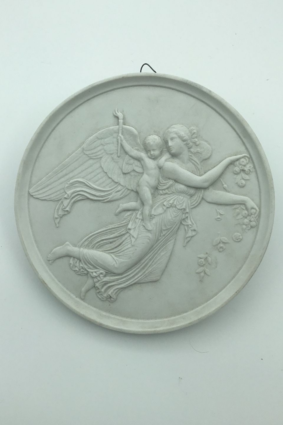 Bertel Thorvaldsen: Bing og Grøndahl Biscuit Platte "Dagen" No 86. Kopi fra 1840 after Thorvaldsens original fra Rom 1815. Måler 14,5cm (5.70 inch). Fremstillet i slutningen af 19. århundrede.
