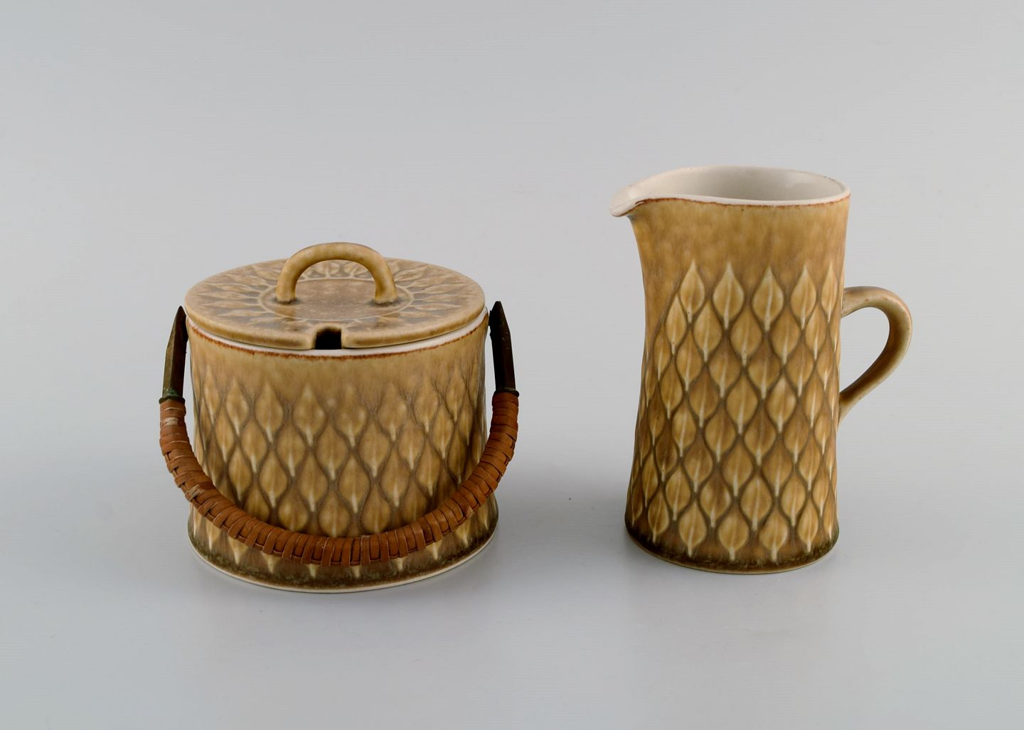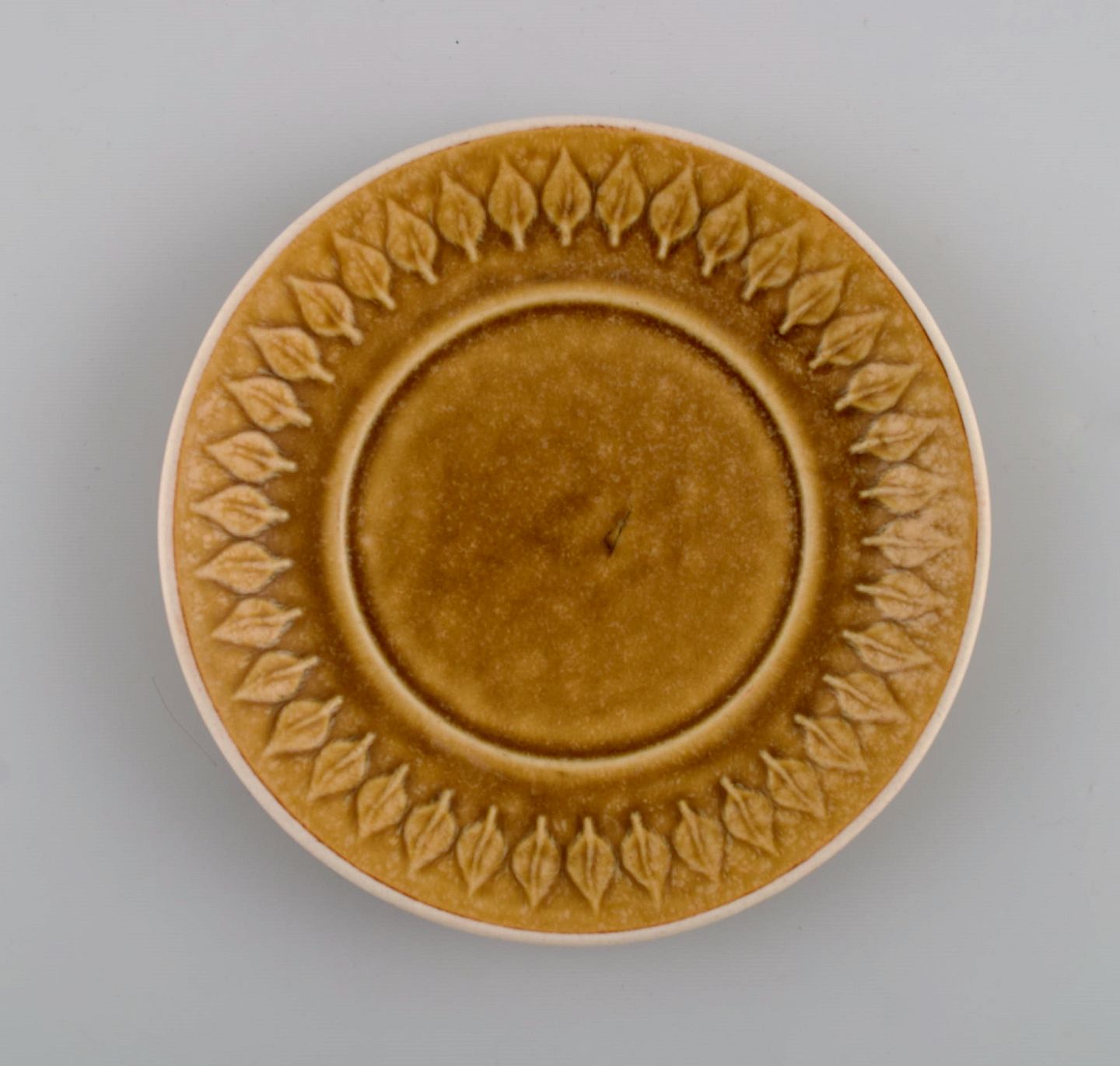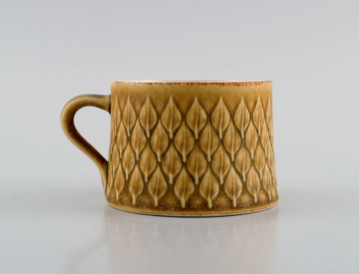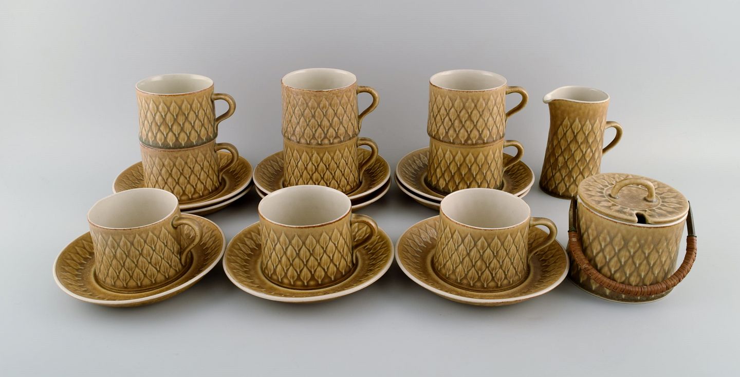 Jens H. Quistgaard (1919-2008) for Bing & Grøndahl / Nissen Kronjyden. Relief teservice i glaseret stentøj til 9 personer. Smuk glasur i sennepsgule nuancer. 1960'erne.