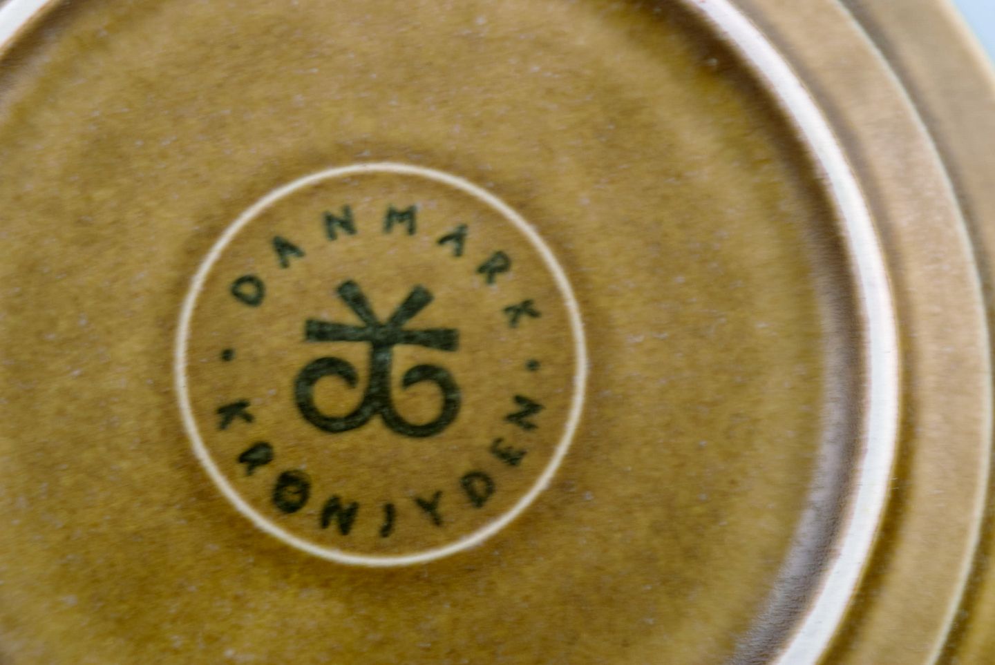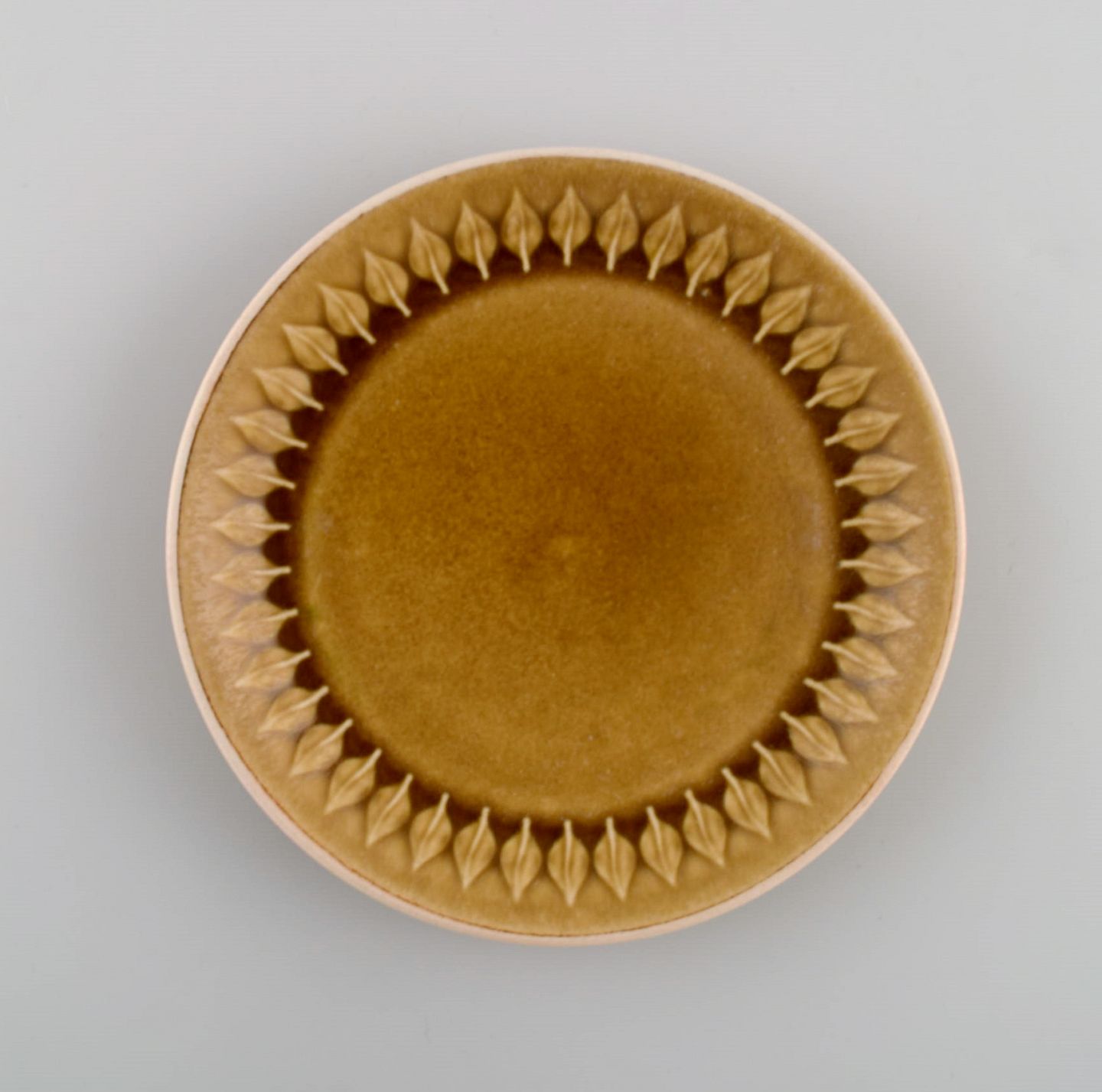 Jens H. Quistgaard (1919-2008) for Bing & Grøndahl / Nissen Kronjyden. 11 Relief kagetallerkener i glaseret stentøj. Smuk glasur i sennepsgule nuancer. 1960'erne.