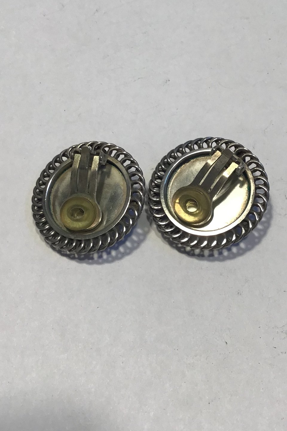 Georg Jensen Sterling Sølv Øreringe No 85. Grøn Agat Clips
