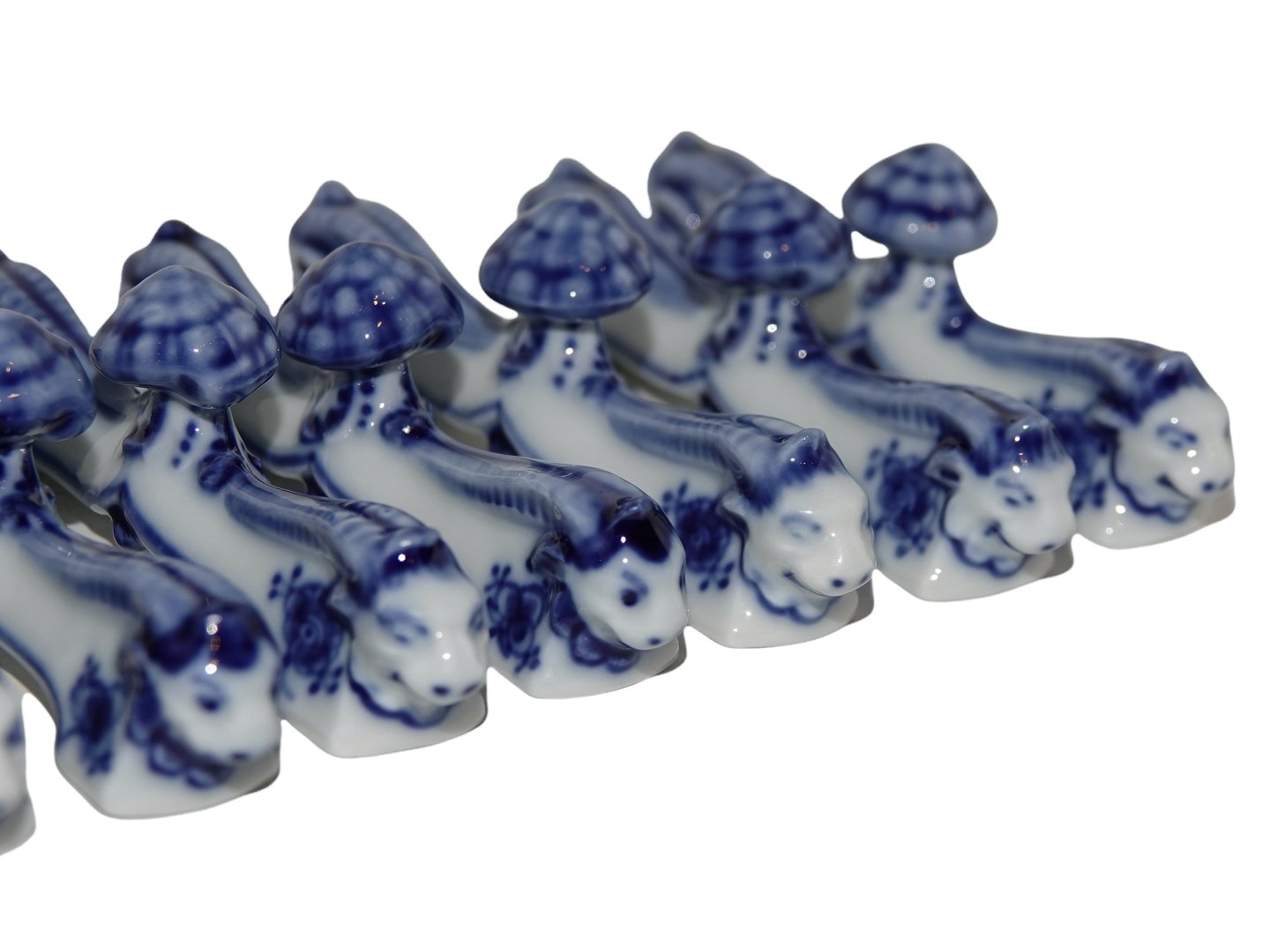 Royal Copenhagen Musselmalet Riflet, knivstol dekoreret med hoveder på siden.