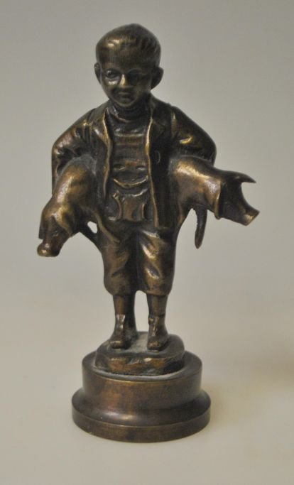 Bronzefigur af dreng med to grise, 20. årh. Danmark.