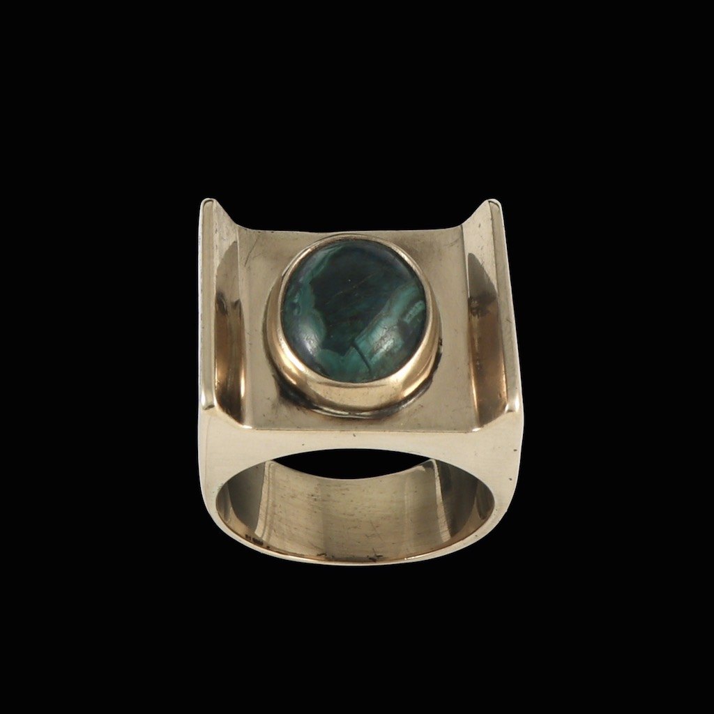 Niels Ingvardt Johansen. Ring i 14k Guld med Malakit.