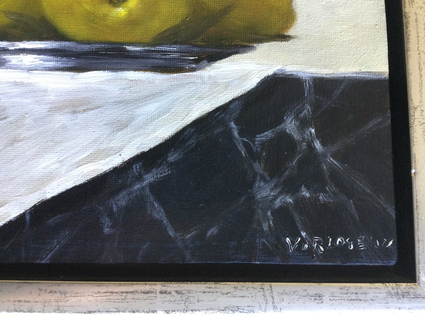 Maleri af Denis Virlogeux - Opstilling med citroner på fad.