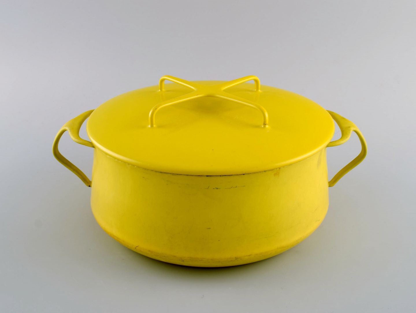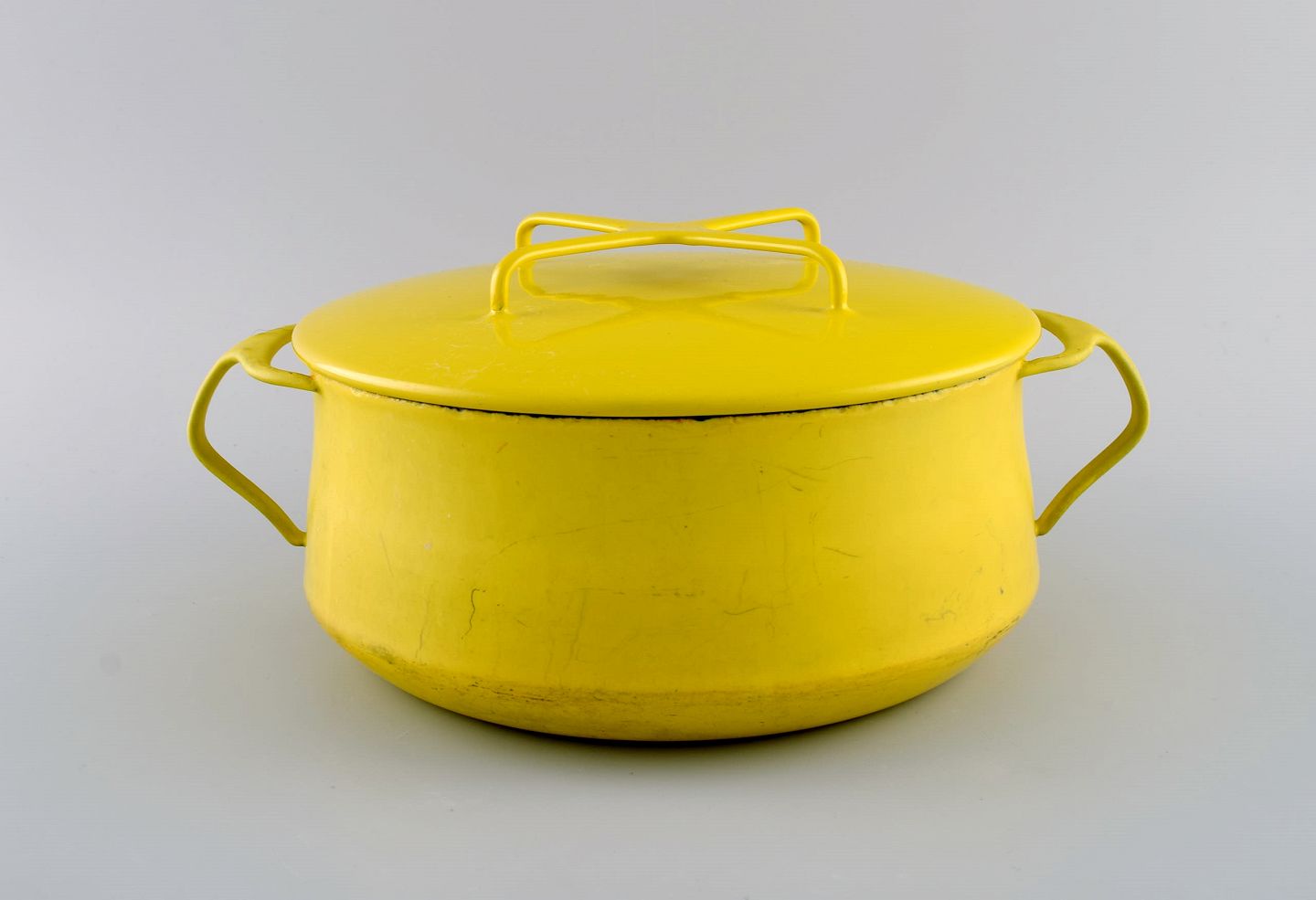 Jens H. Quistgaard (1919-2008), Danmark. Gryde med låg i gul emalje. 1960'erne.