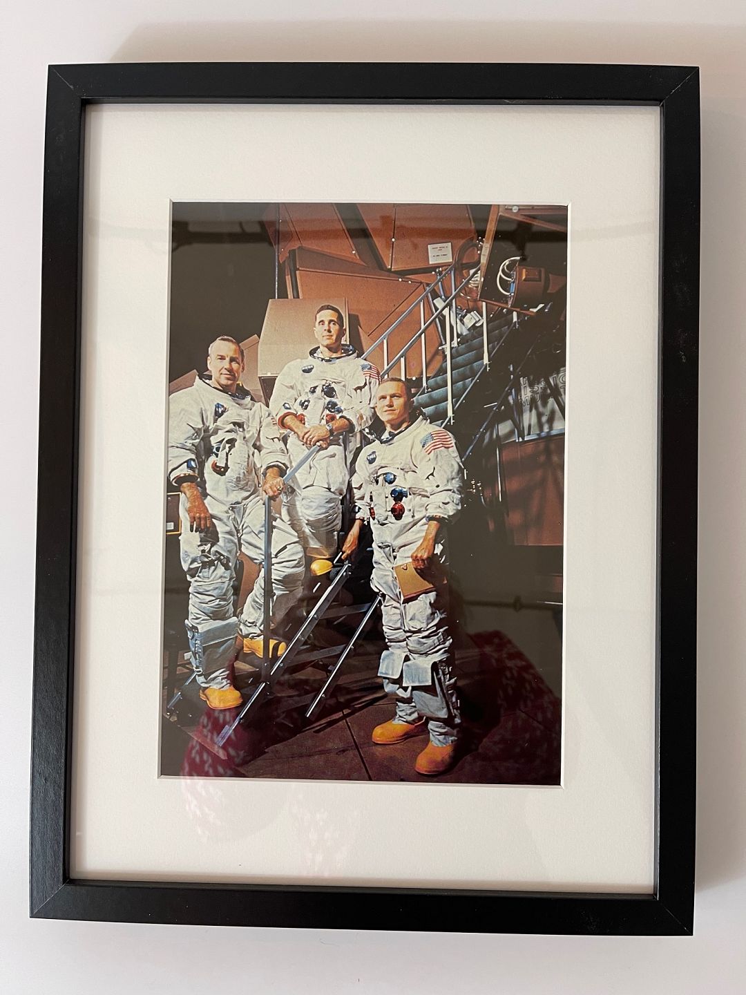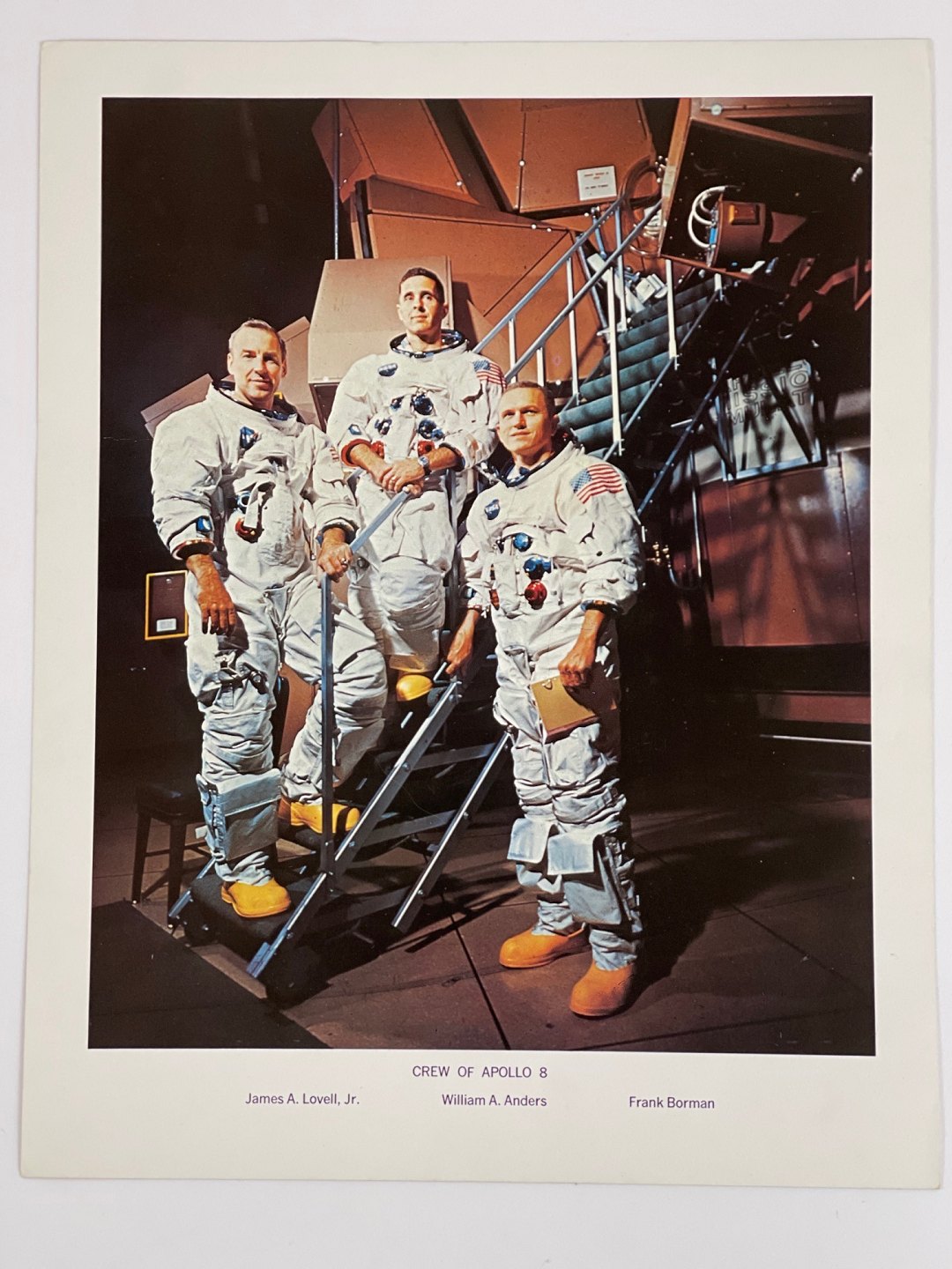 Vintage NASA farveoffsetfoto / fotoplakat / fotoprint af James Lowell Jr., William Anders og Frank Borman - Apollo 8 rumfartøjets mandskab i 1968.