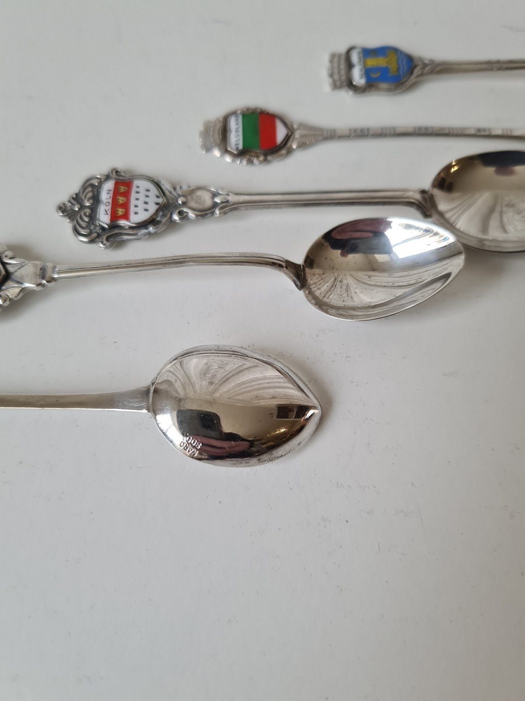 Sæt på 5 tyske souvenir mokkaskeer i sølv og emalje