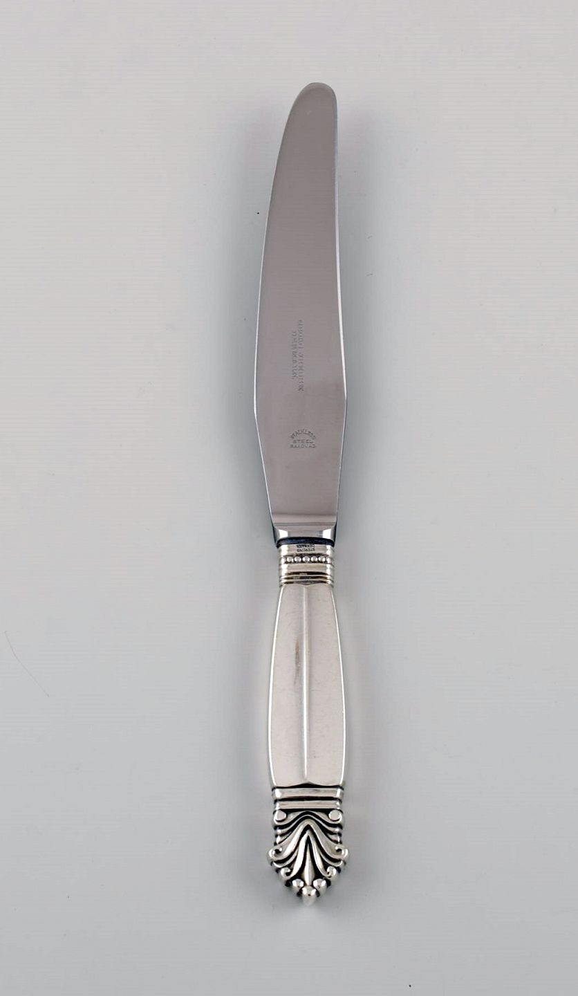 Georg Jensen Dronning middagskniv i sterlingsølv og rustfrit stål.