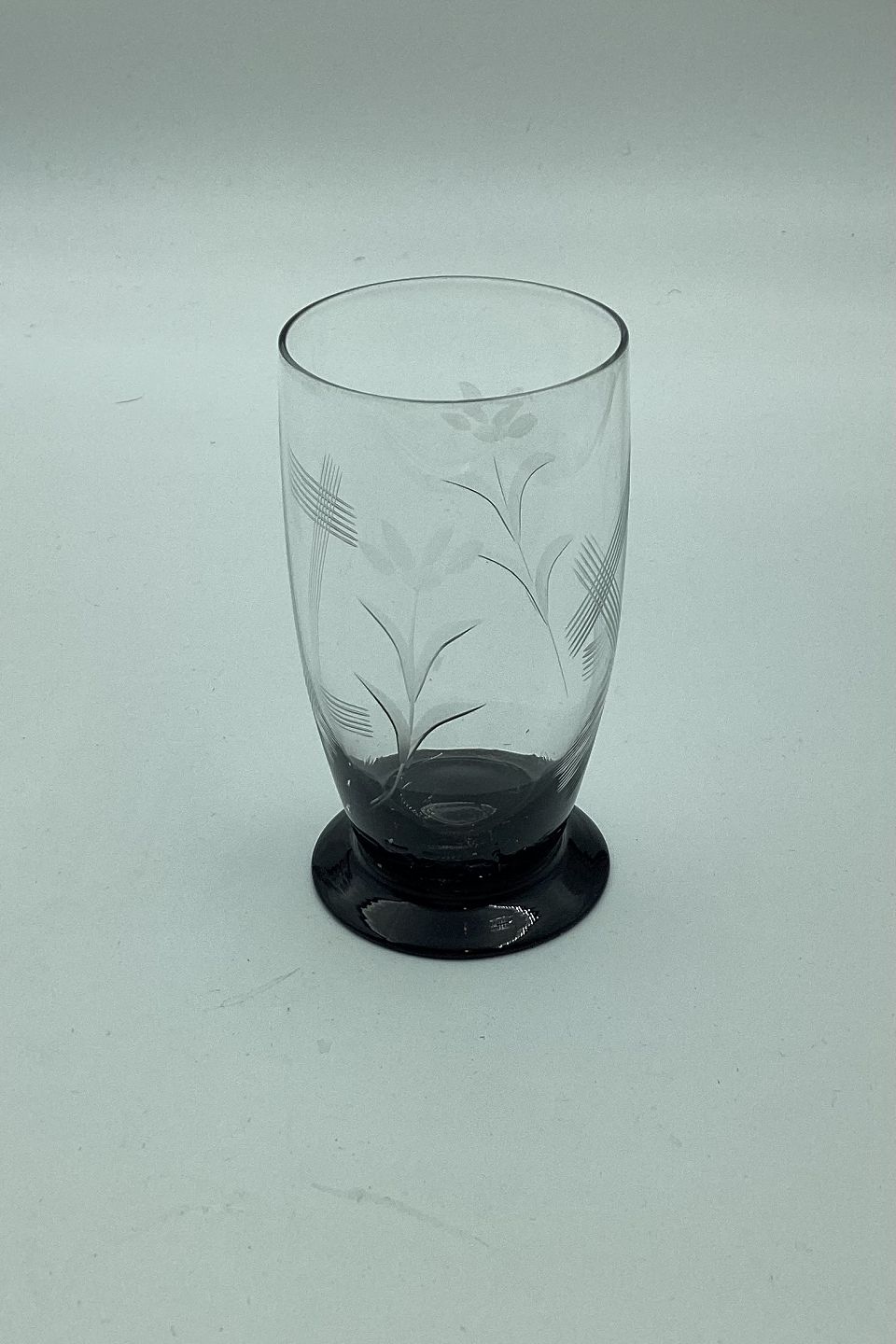 Holmegaard børneglas på sort fod med slibninger