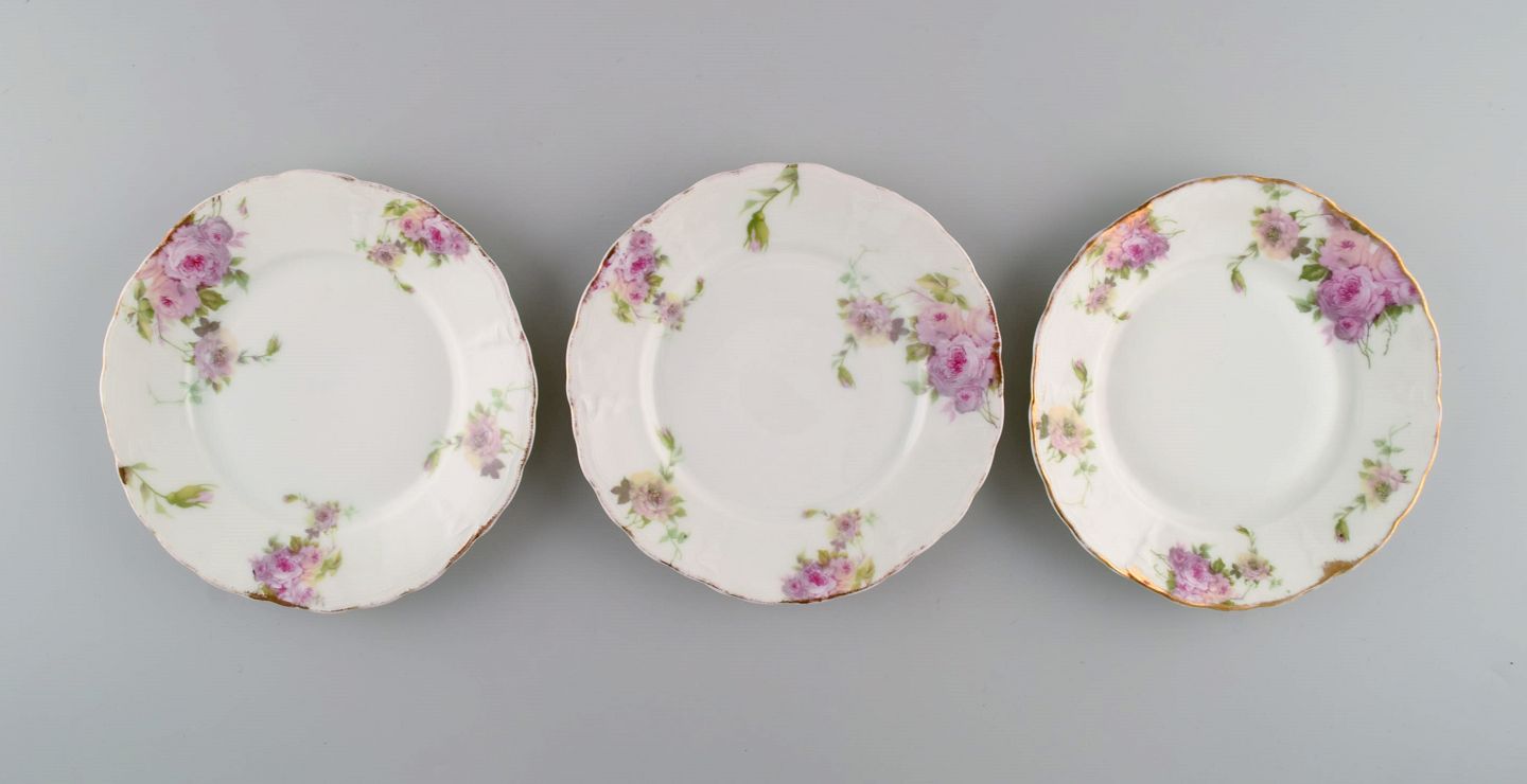 Rosenthal, Tyskland. Tre Iris tallerkener i håndmalet porcelæn med blomster og guldkant. 1920'erne.