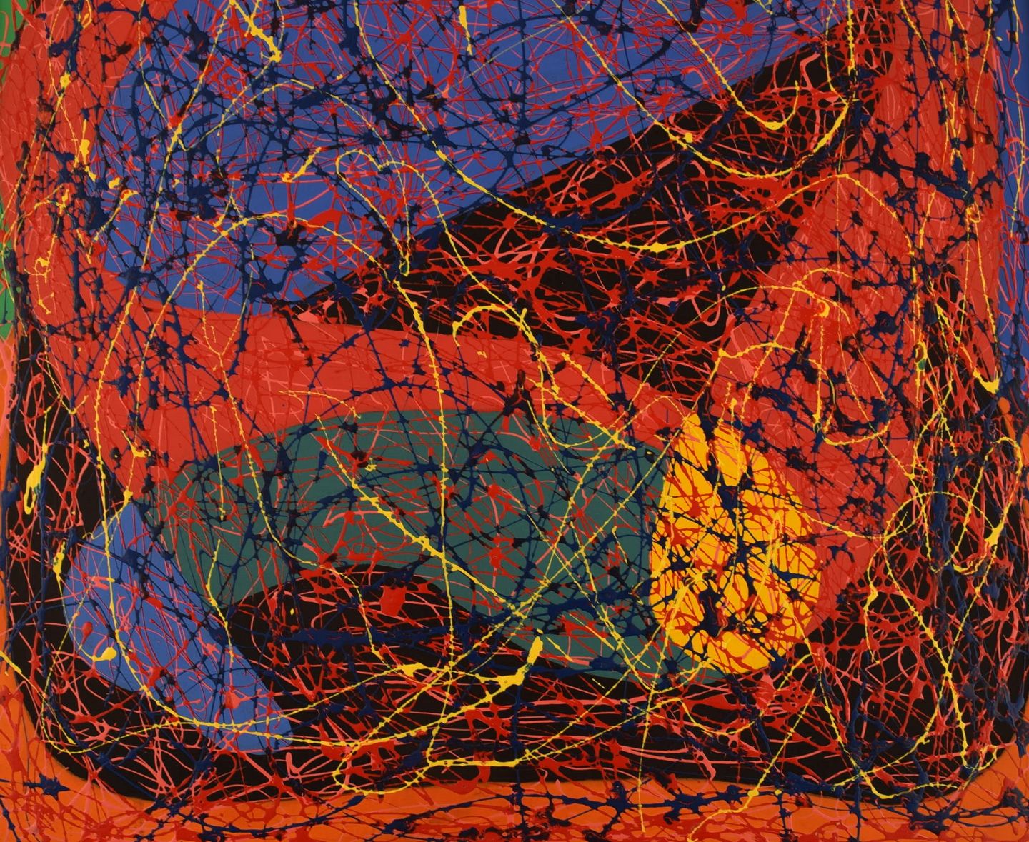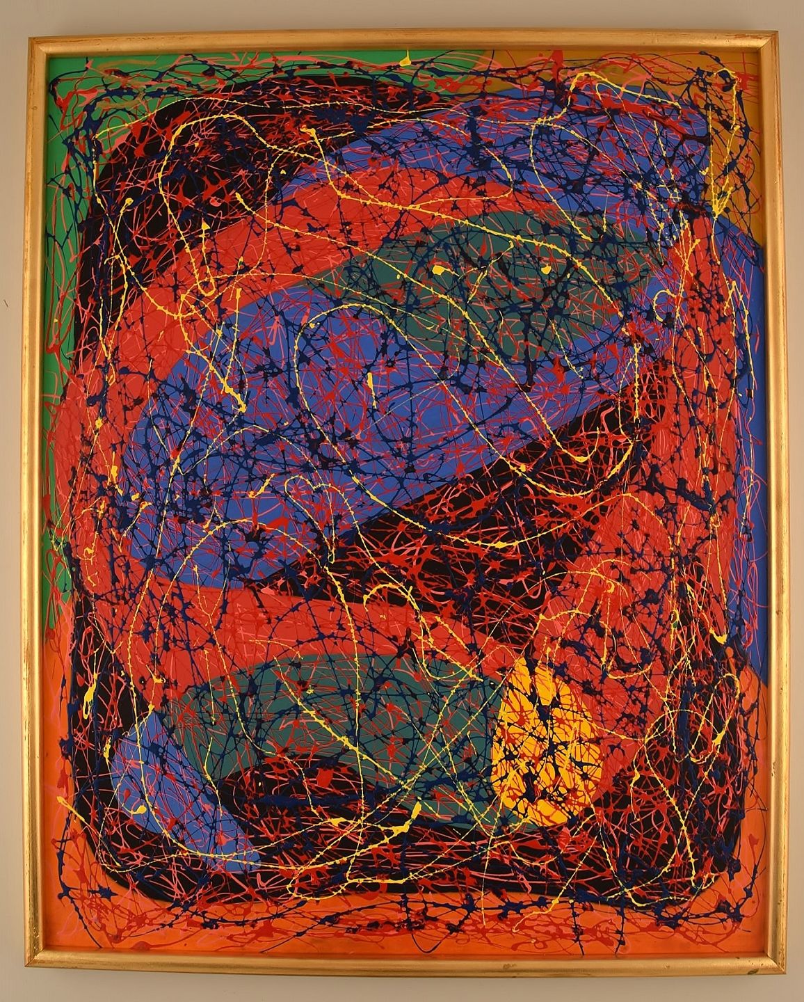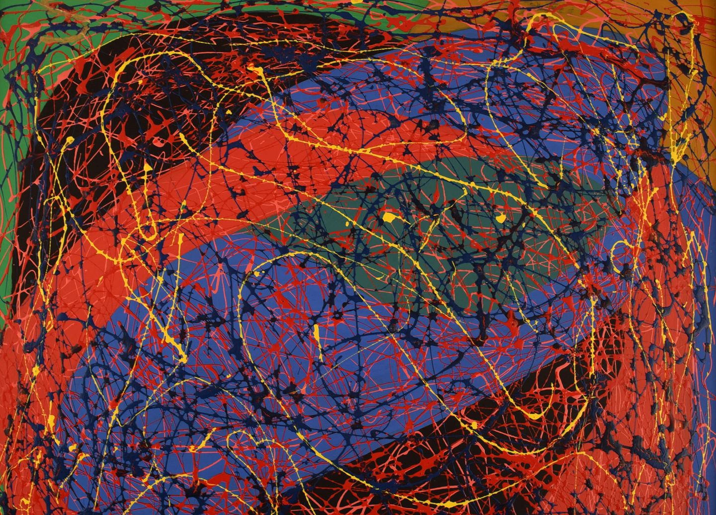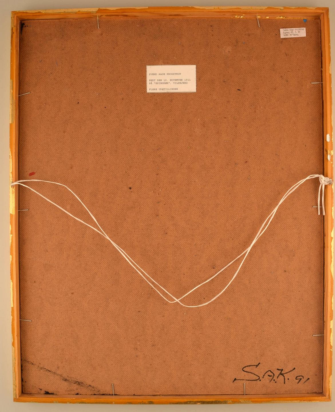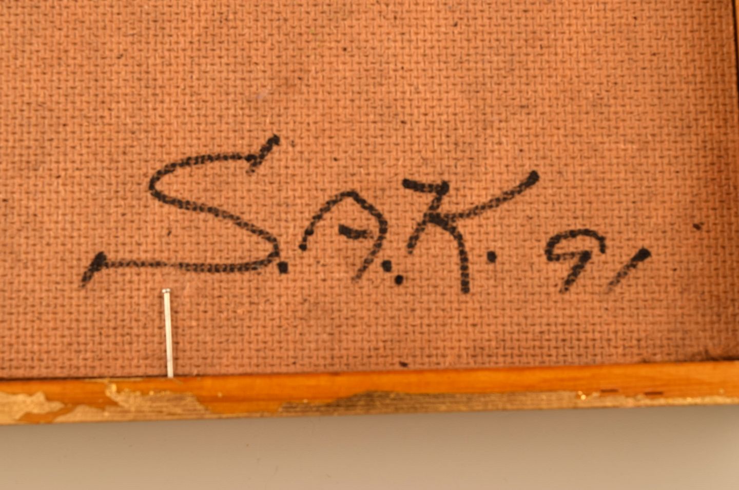 Svend Aage Krogstrup, dansk kunstner. Akryl på plade. Abstrakt komposition. Dateret 1991.