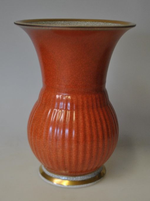 Royal Copenhagen craquelle vase, 212/2498.20. årh. København, Danmark. Grålig med rød overglasur. Stemplet. H.: 16,8 cm.