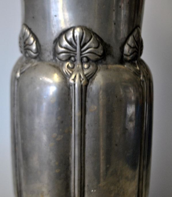 Hertz/Ballin vase i tin, ca. 1910, København, Danmark. Udformet af Mogens Ballin (1871 - 1914). Design: 1719. Stemplet. H.: 26,5 cm.
