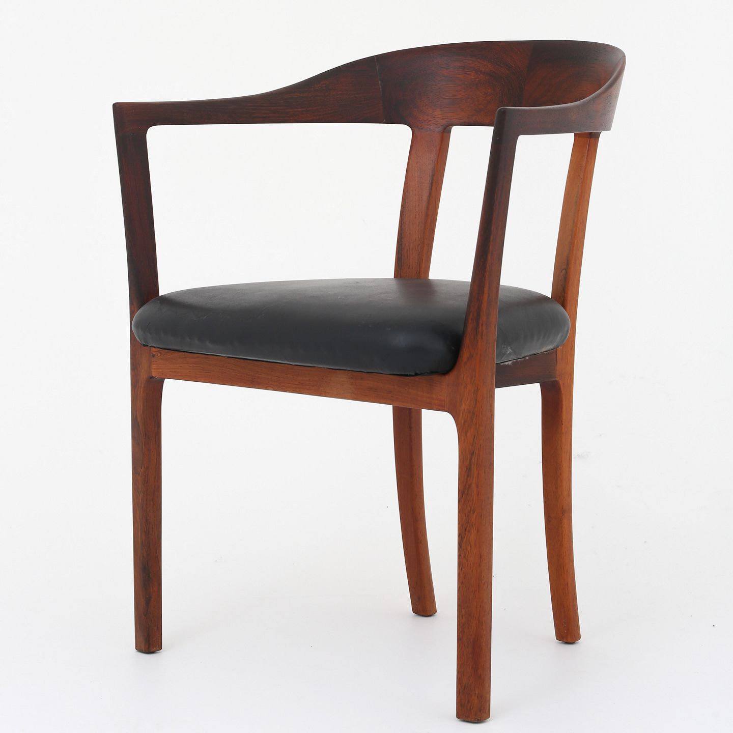 Sjælden karmstol i palisander og sort læder. Model J2833. Designet i 1958.