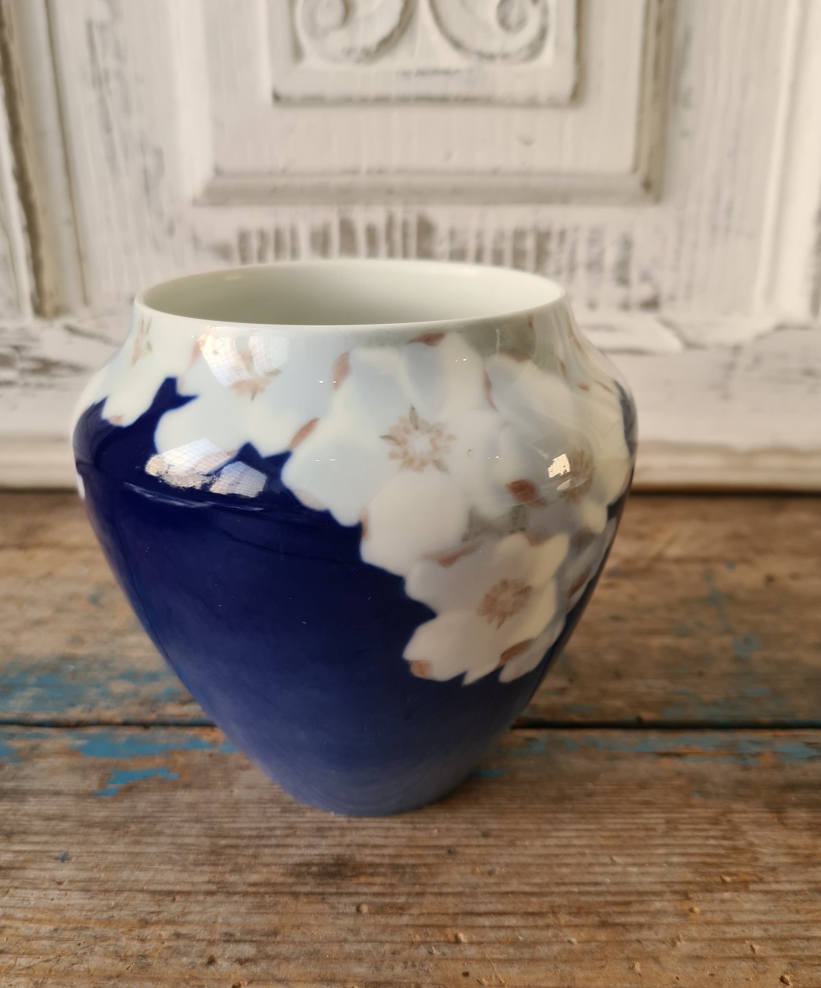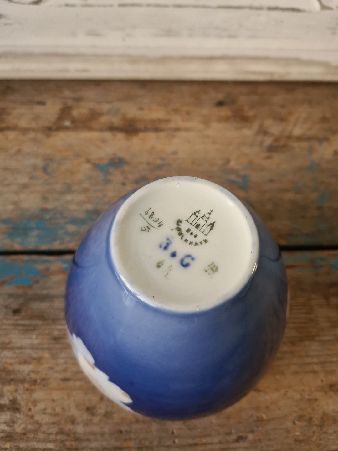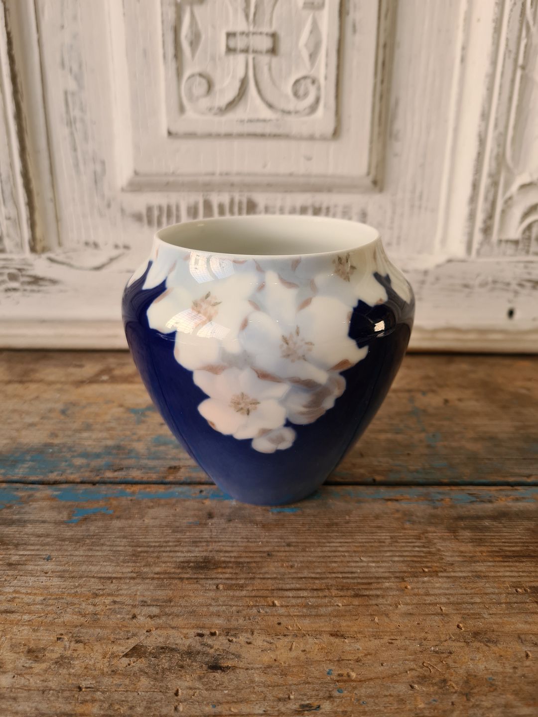 B&G Art Nouveau vase dekoreret med æbleblomster på mørkeblå baggrund