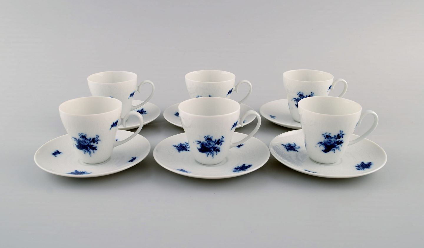 Bjørn Wiinblad for Rosenthal. Seks Romanze Blå Blomst mokkakopper med underkopper. 1960'erne.