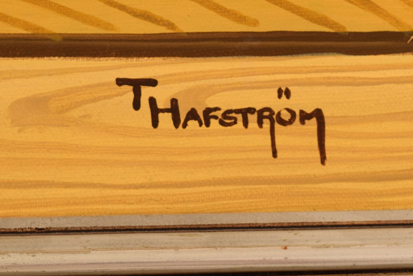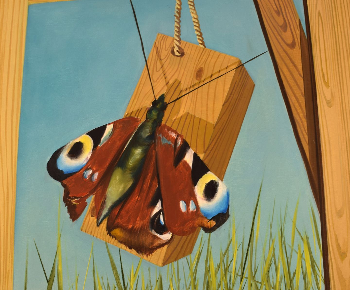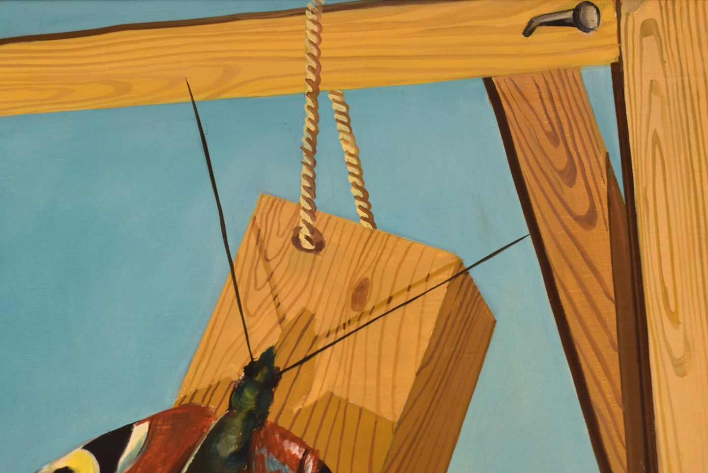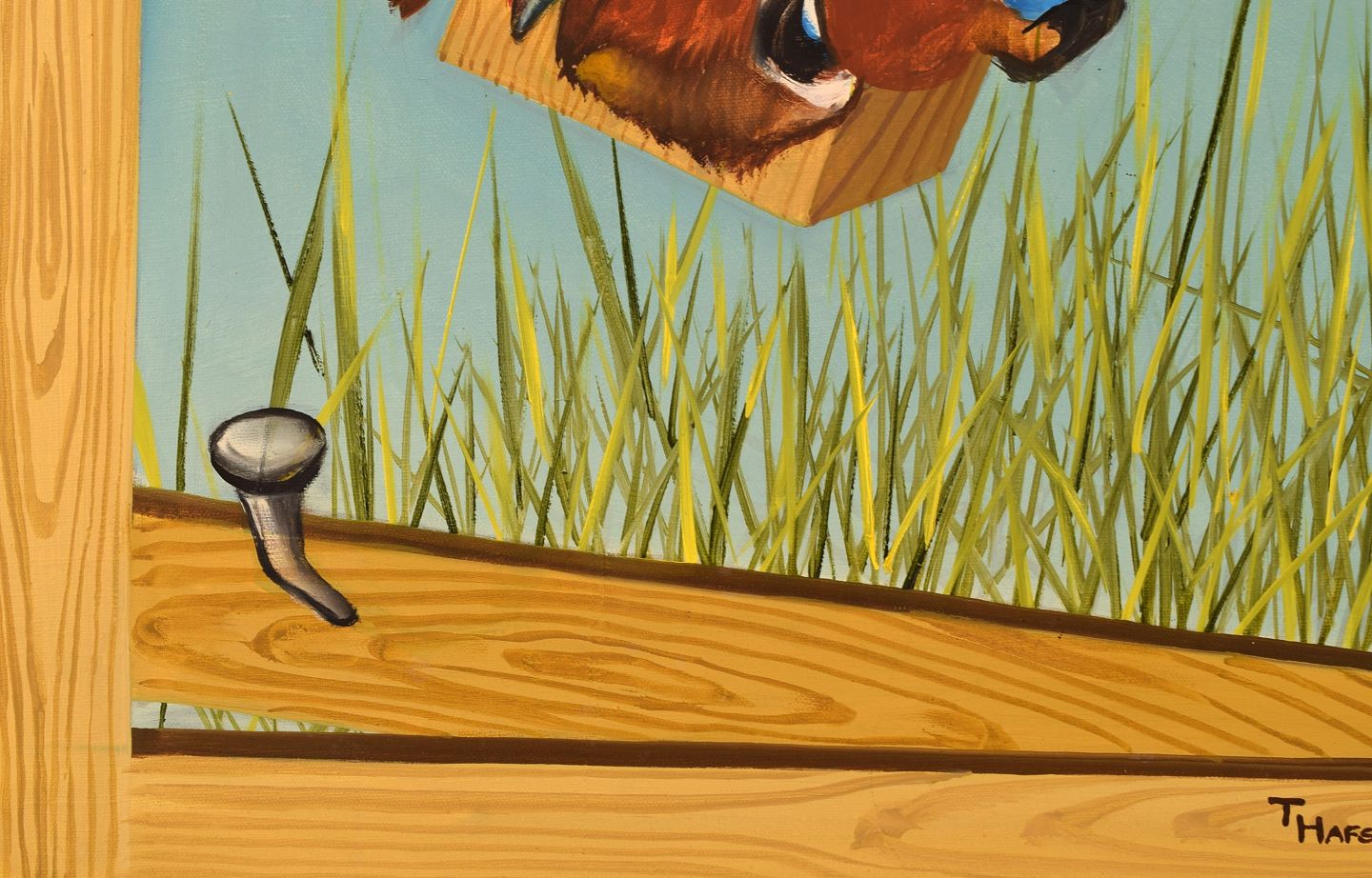 Thomas Hafström (f. 1954), svensk kunstner. Olie på lærred. Sommerfugl på træværk. Sent 1900-tallet.
