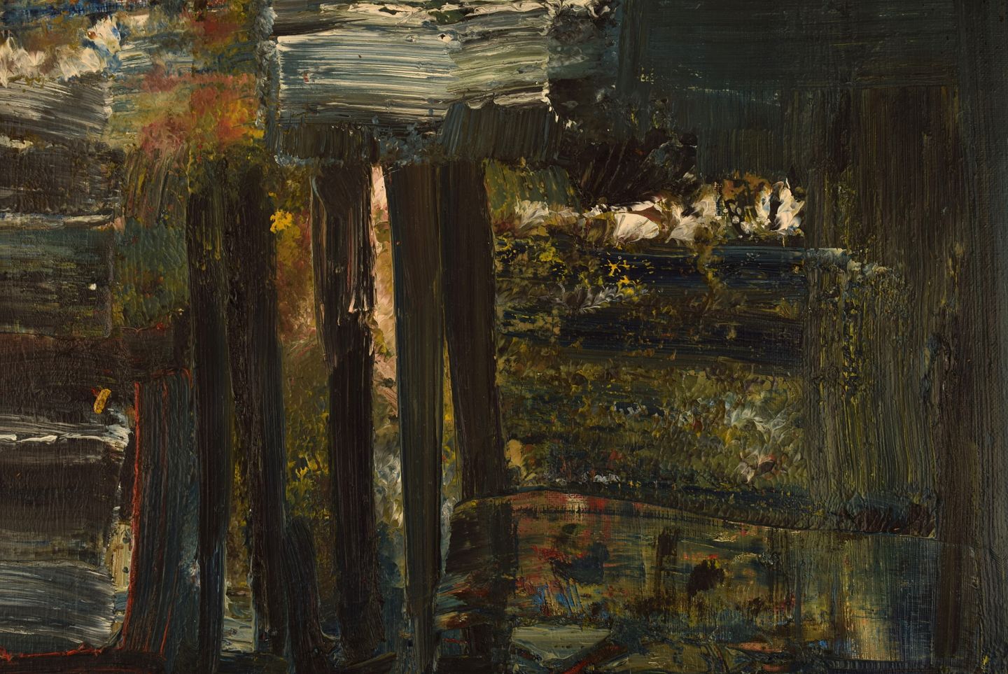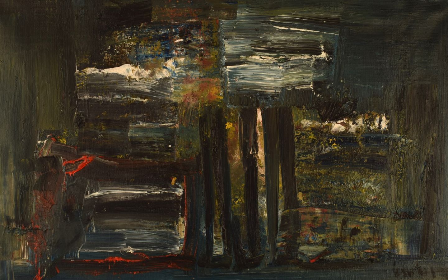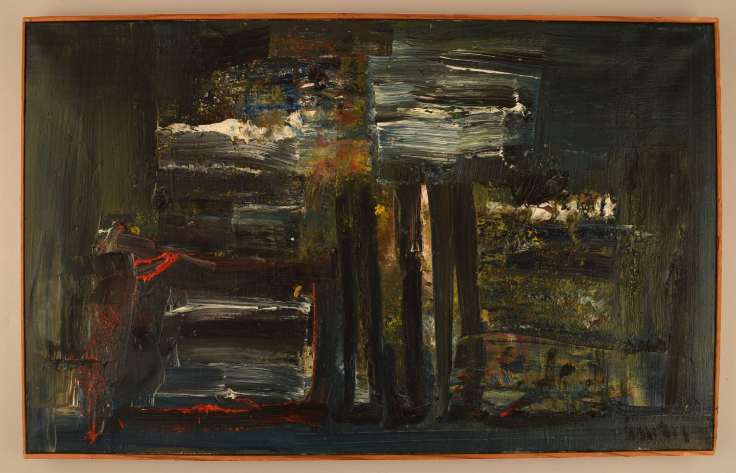 Ubekendt kunstner. Olie på lærred. Abstrakt komposition. Midt 1900-tallet.