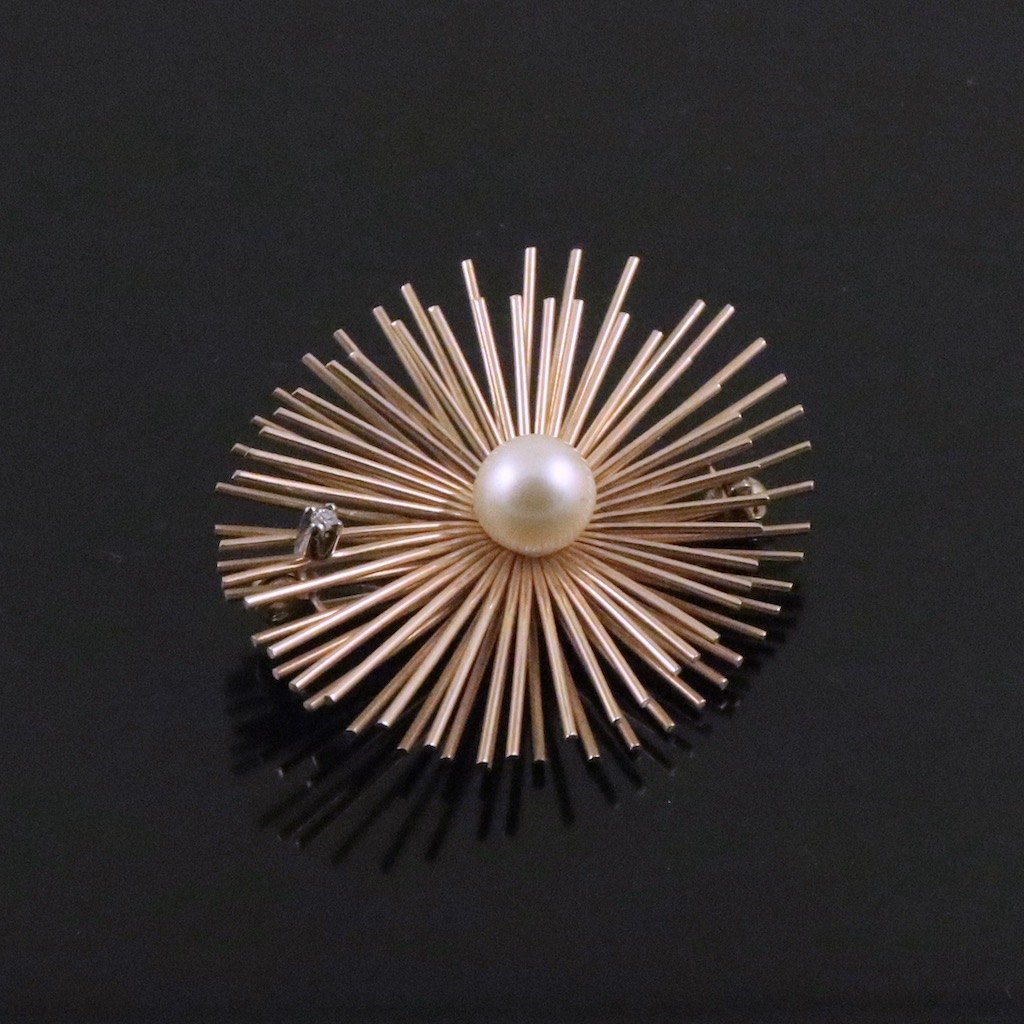 Viggo Wollny. Broche i 14k Guld med perle og brillant 0,03ct.