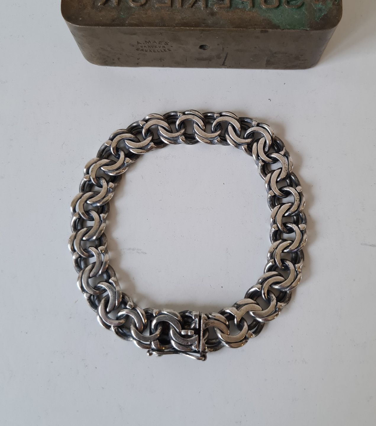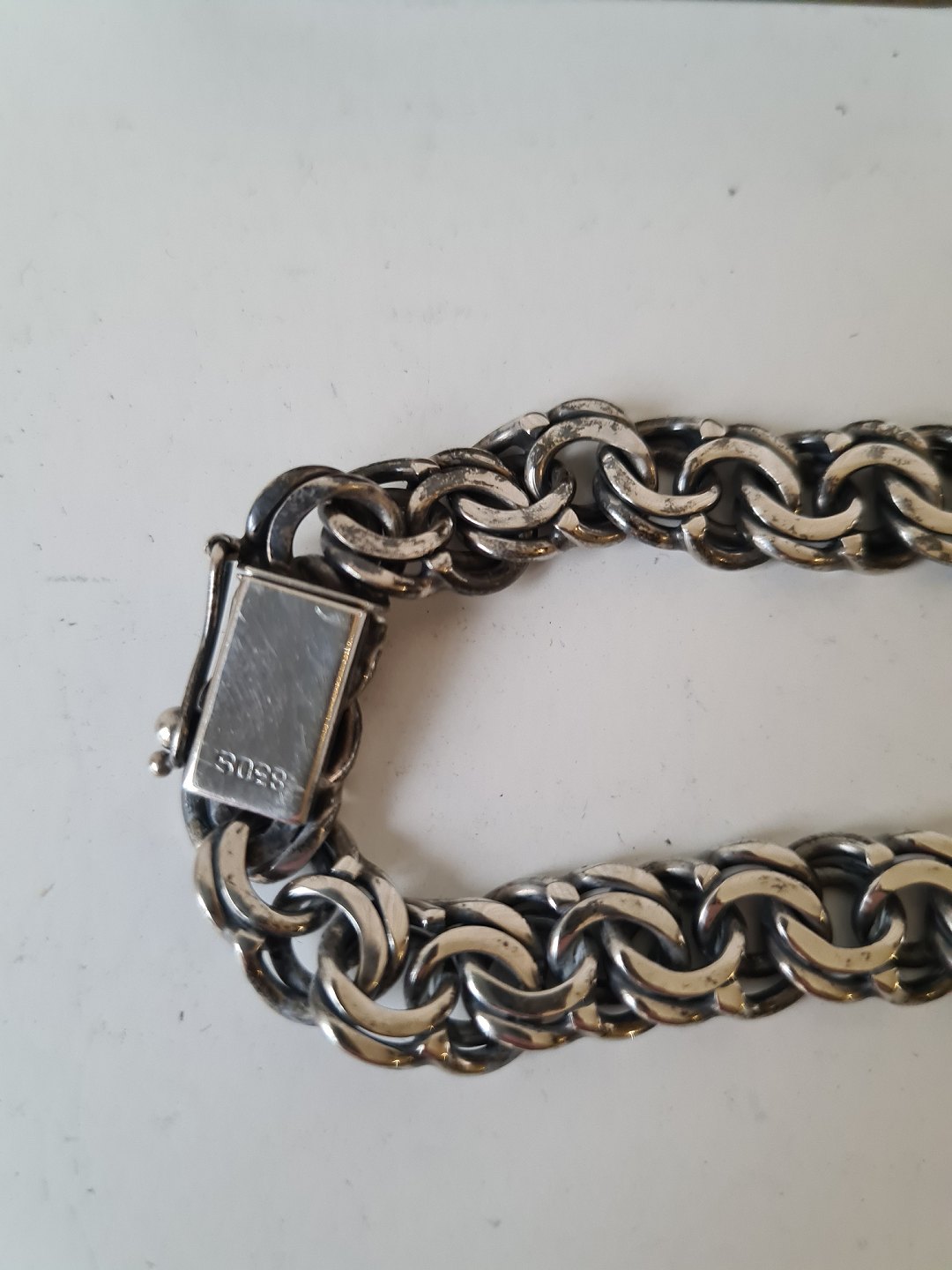 Kraftigt Bismarck armbånd i sølv 19,5 cm.
