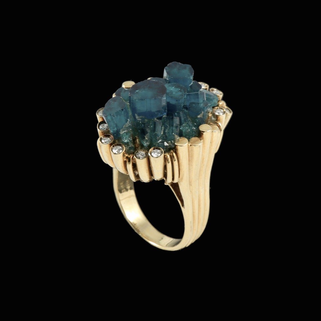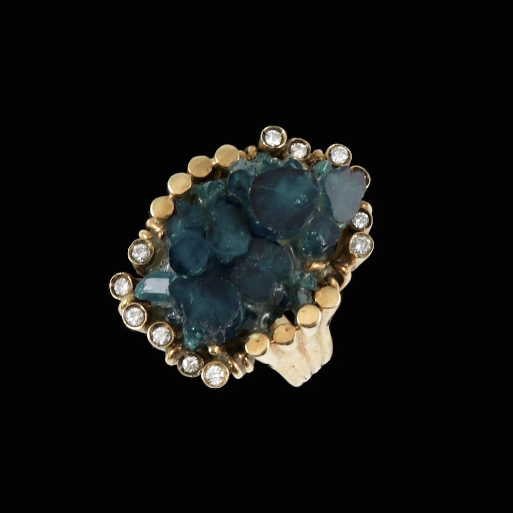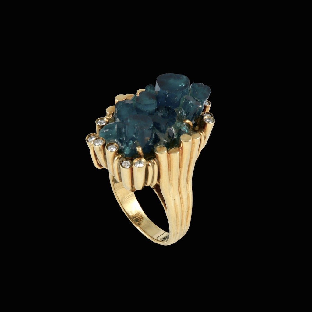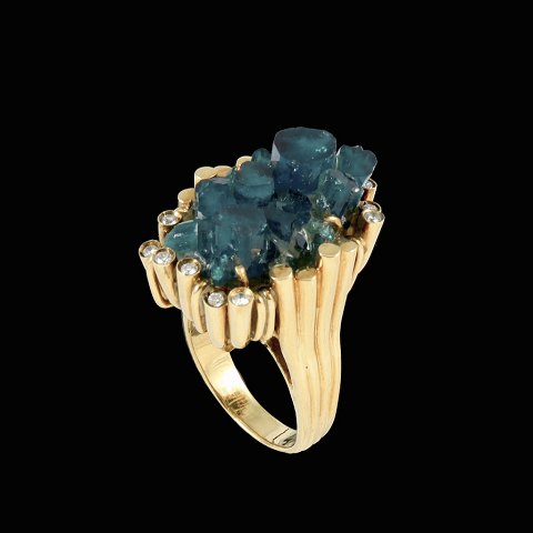 Erik Poul Fenster - Denmark. 18k Gold Ring with Emerald-Crystal and diamonds 0,24ct.