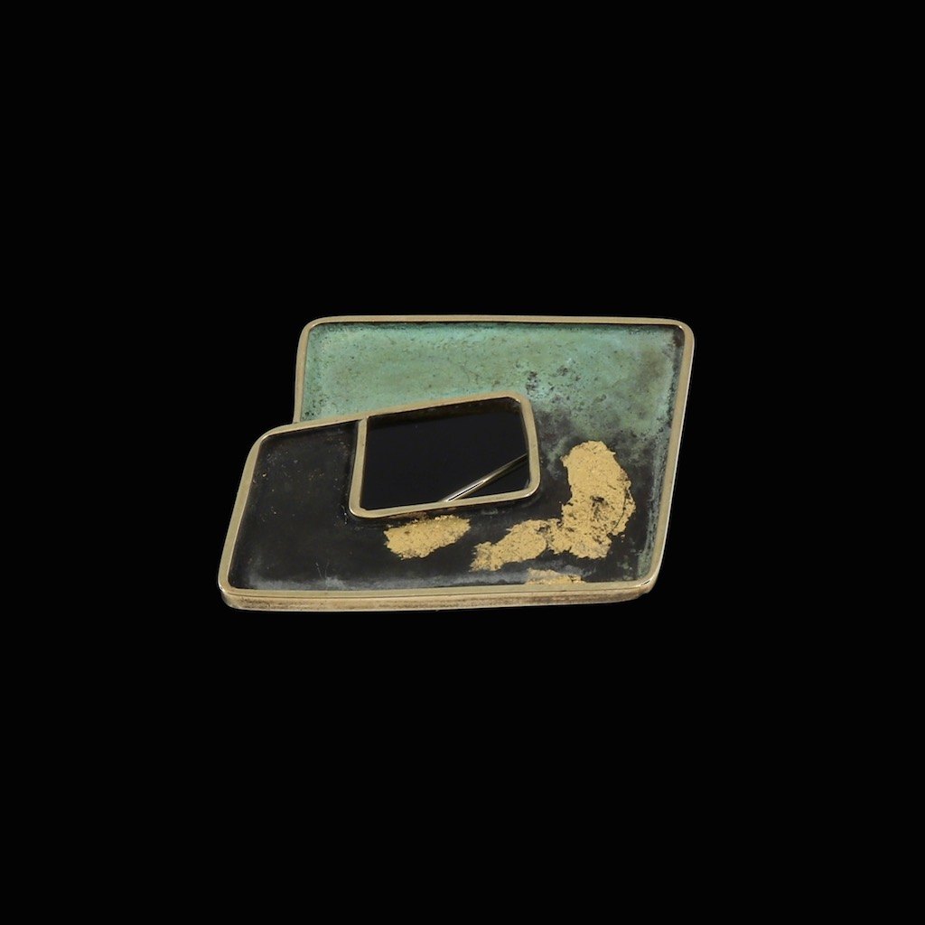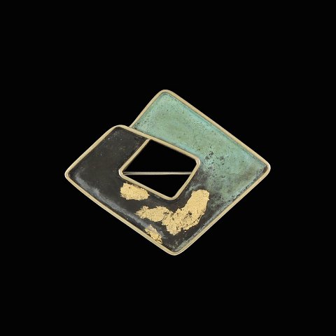Leon Kastbjerg Nielsen. Broche i patineret messing med bladguld.