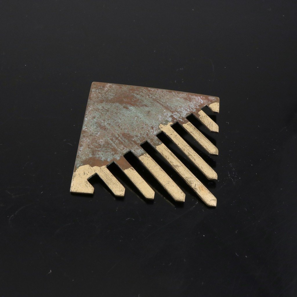 Leon Kastbjerg Nielsen. Handmade Brooch in Patinated Brass with Gold Leaf.