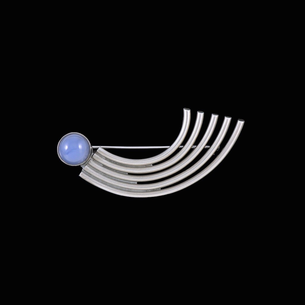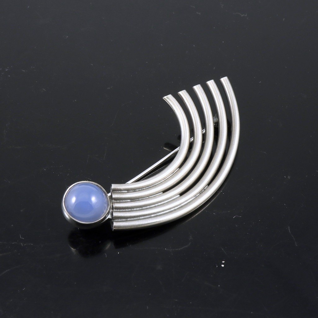 Leon Kastbjerg Nielsen. Broche i sterlingsølv med kalcedon.