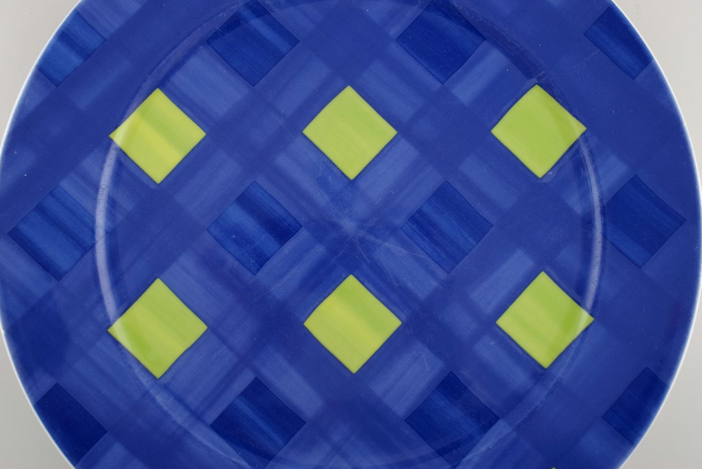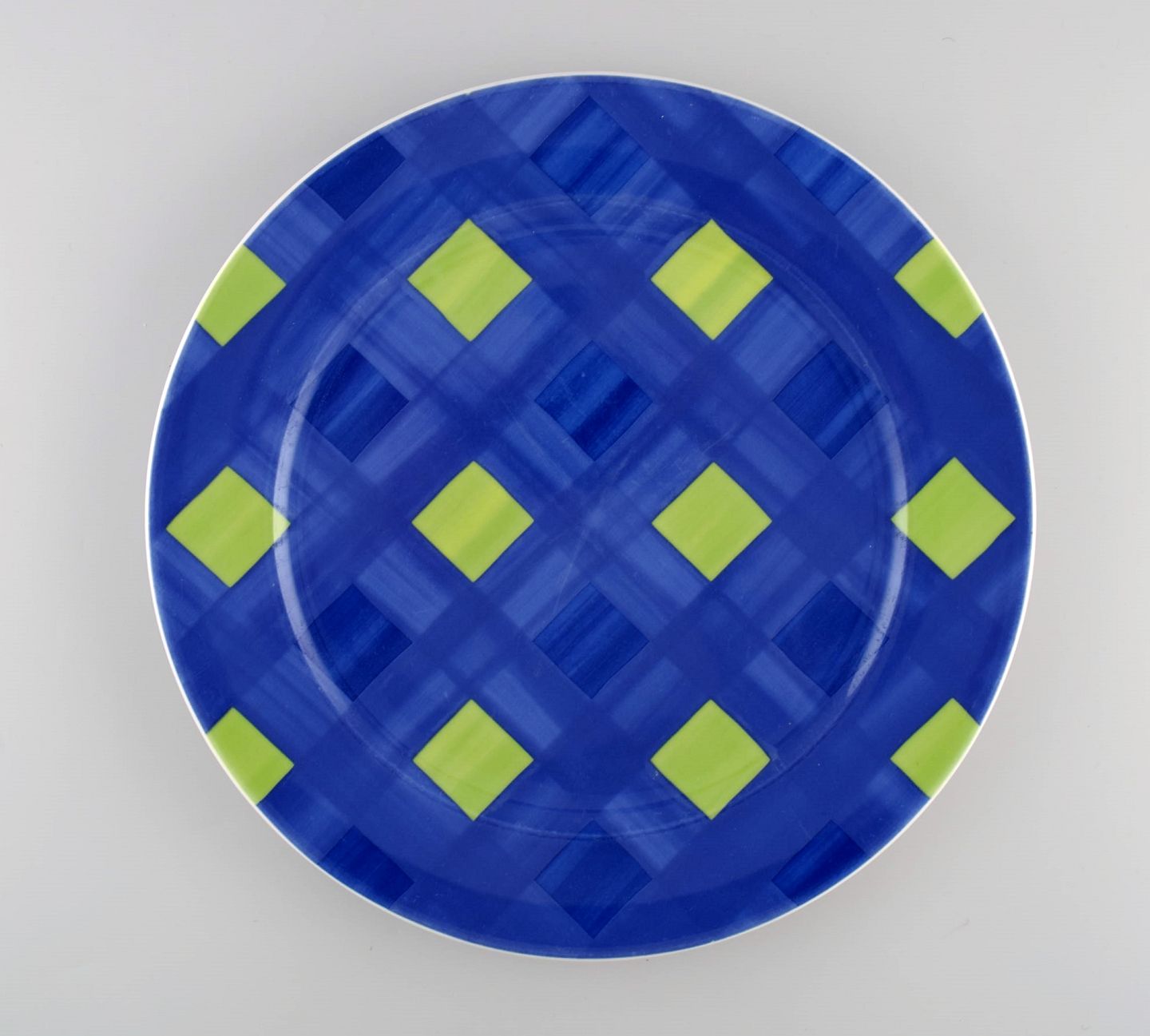 Rosenthal Designers Guild. Orchard Collection. Stor porcelænstallerken. Grønne tern på blå baggrund. Sent 1900-tallet.
