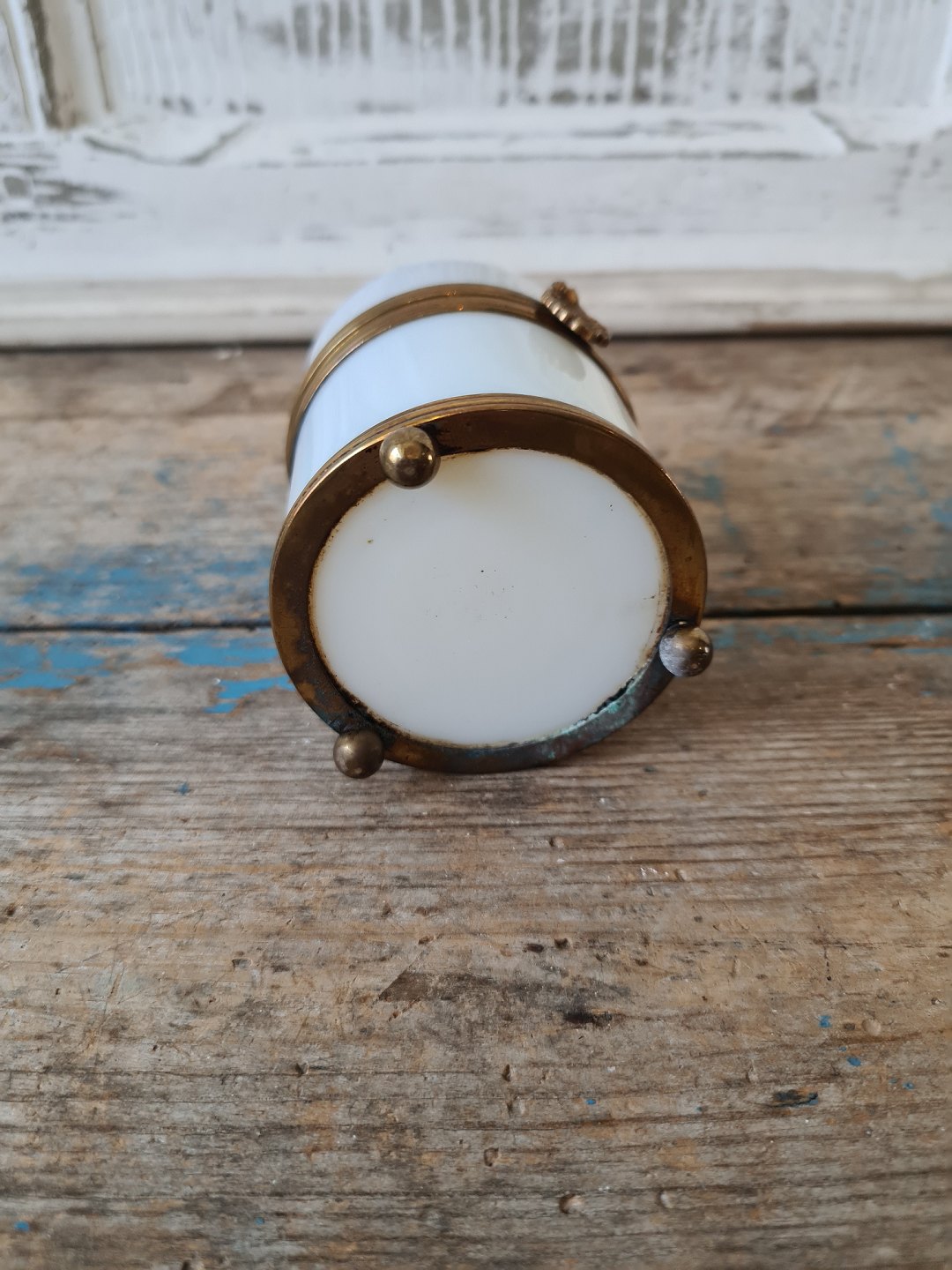 1800tals skrin i hvidt opalineglas med forgyldt montering