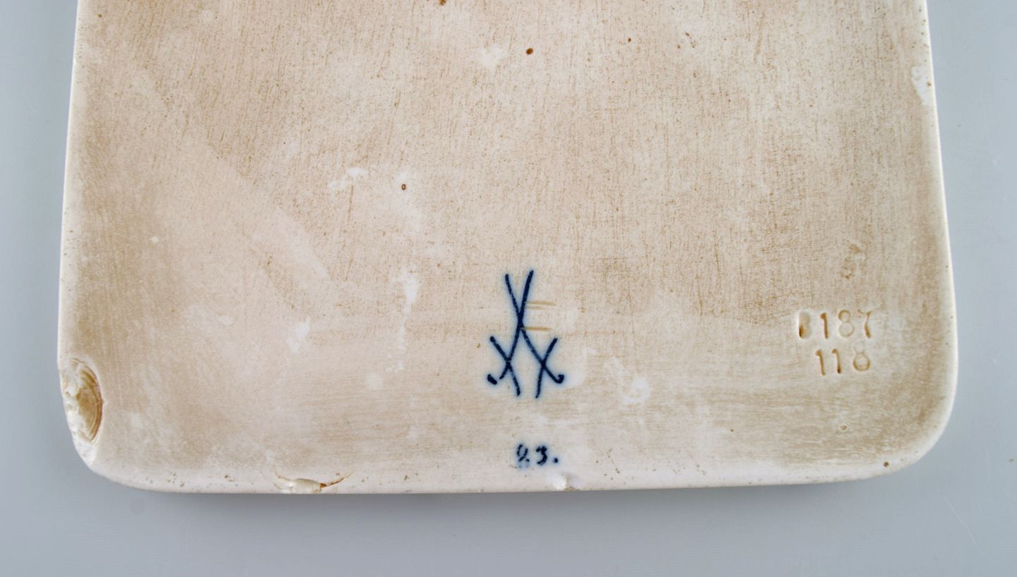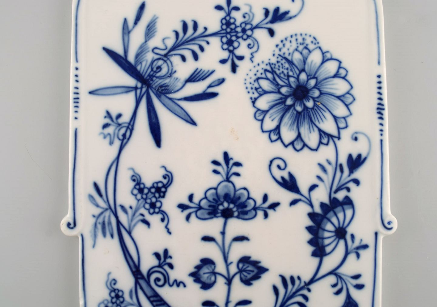 Sjælden Meissen Løgmønstret smørbrik i håndmalet porcelæn. Sent 1800-tallet.