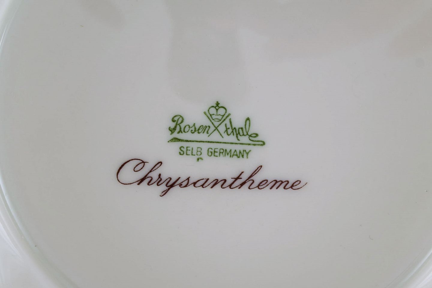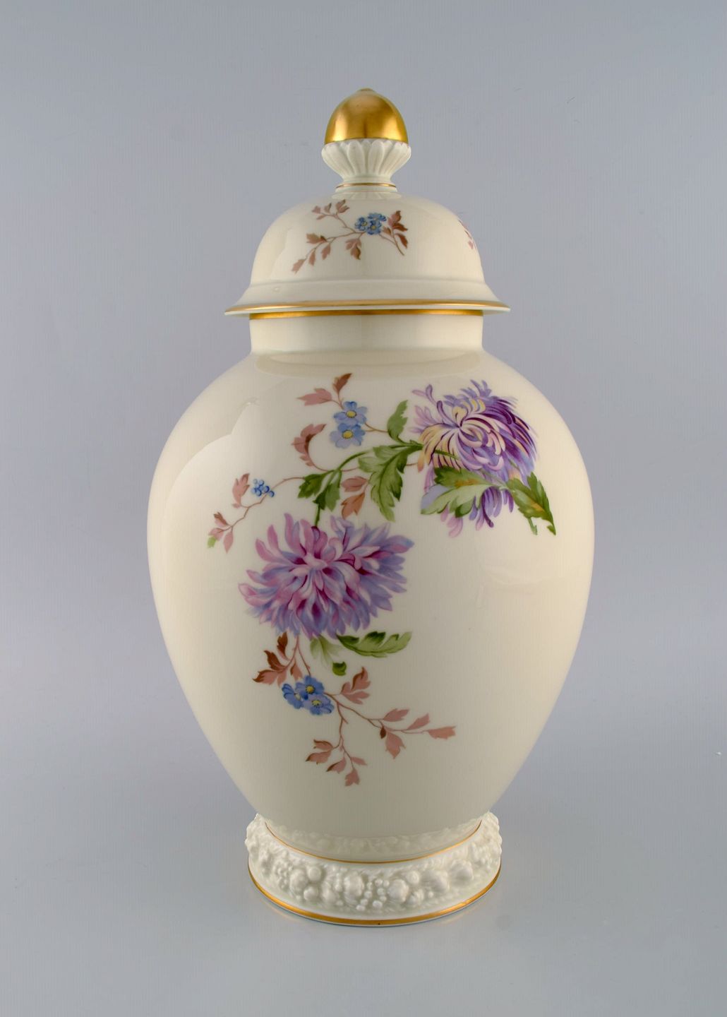 Stor Rosenthal krysantemum lågvase i cremefarvet porcelæn med håndmalede blomster og gulddekoration. 1930'erne.