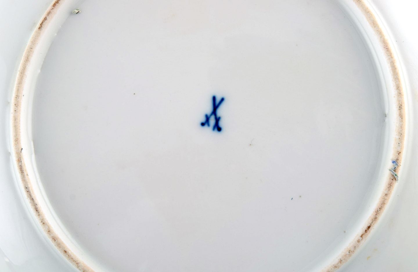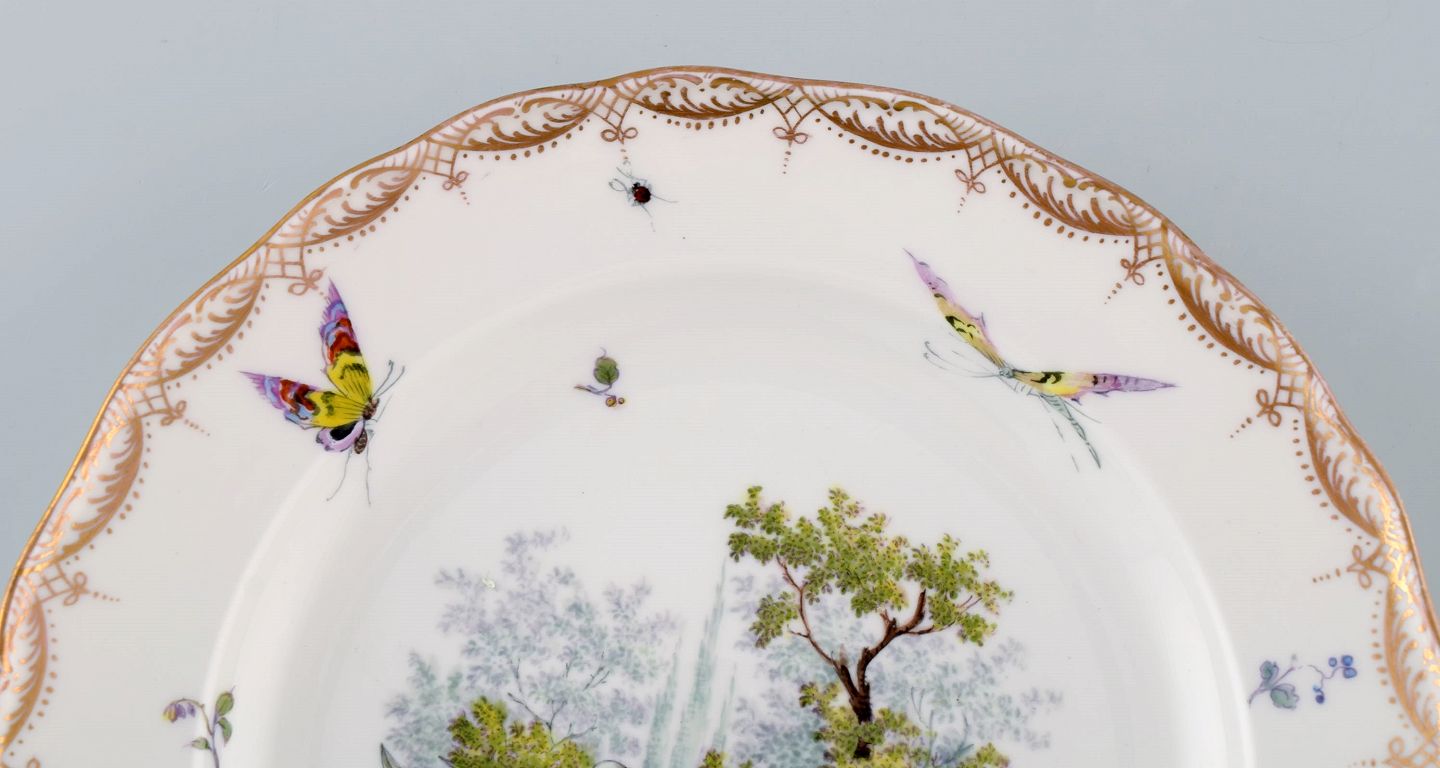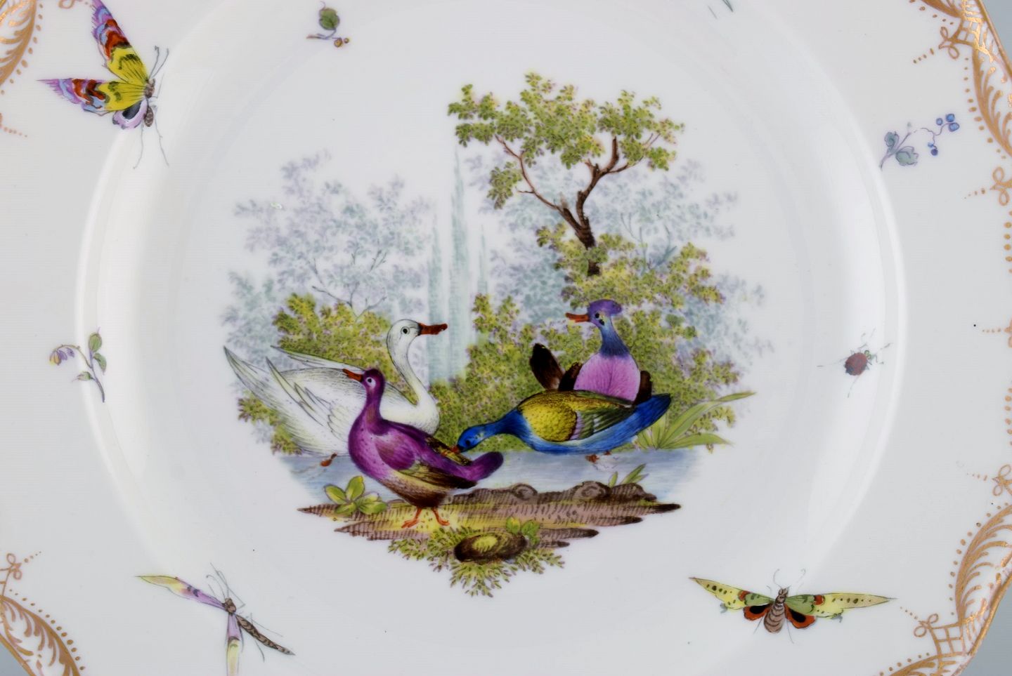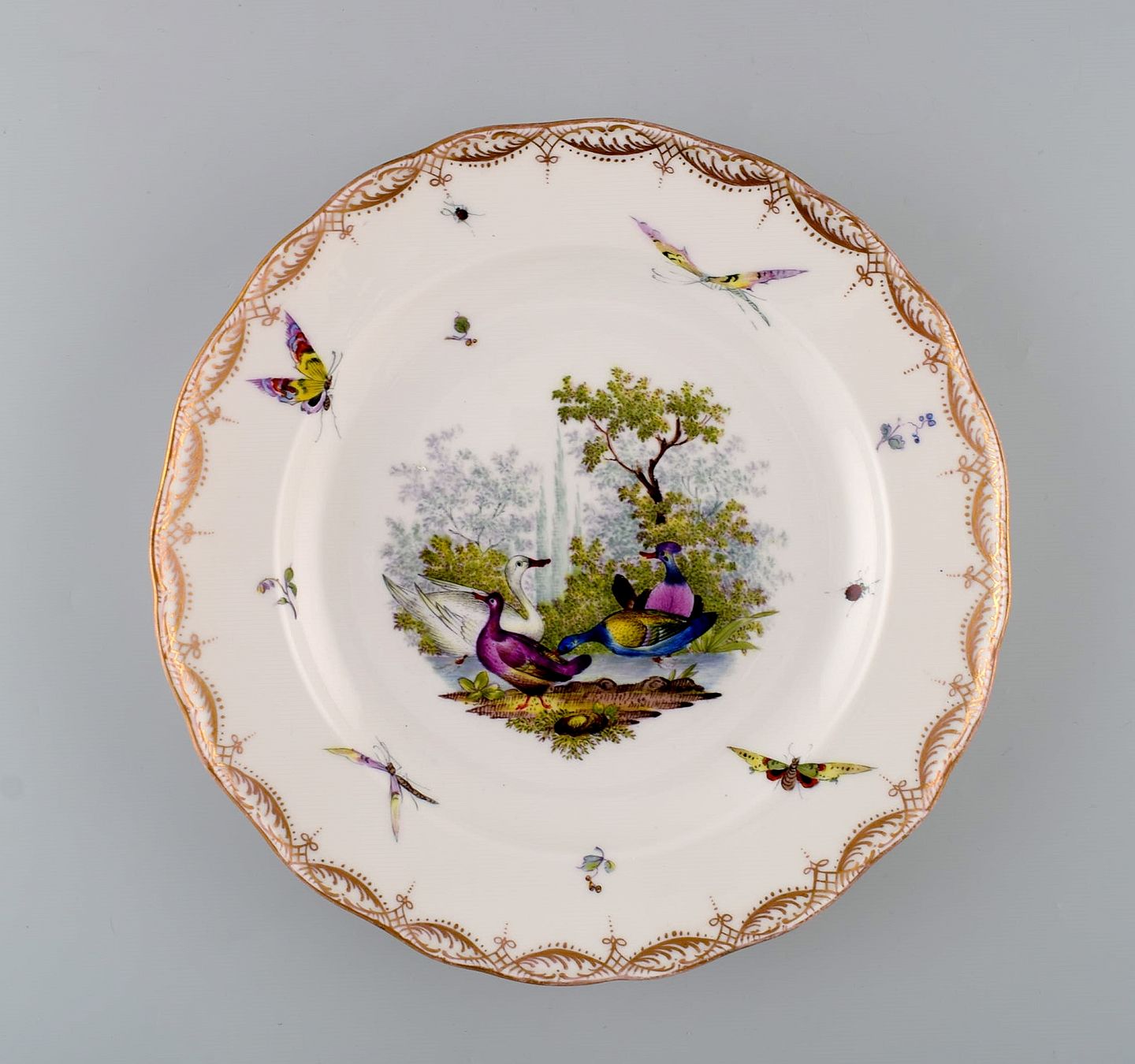 Antique and rare Meissen porcelain plate with hand-painted birds, insects and gold decoration. 19th century.