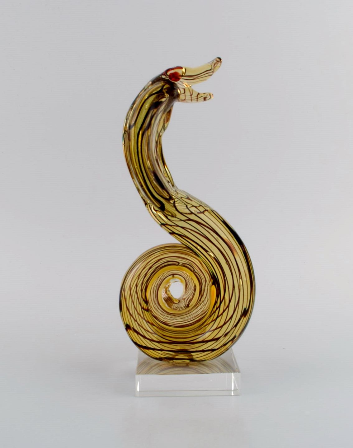 Sjælden Murano skulptur i mundblæst kunstglas. Kobraslange. 1960'erne.
