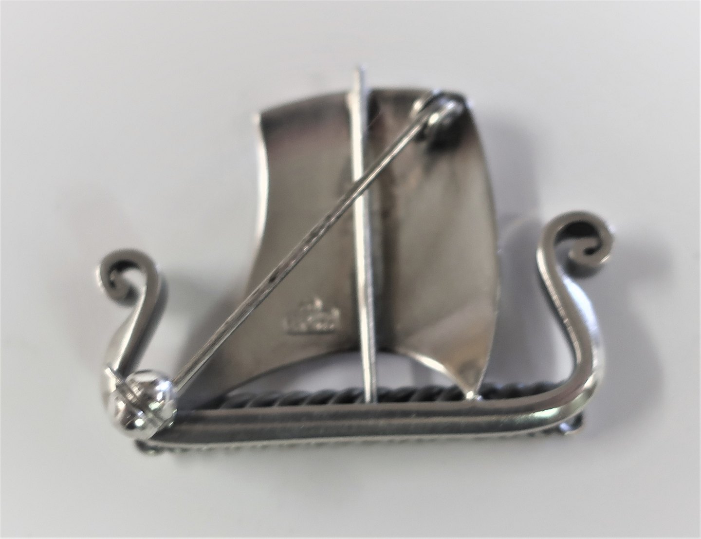 Michelsen. Sterling (925). Brosche med vikingeskib. 37 mm.